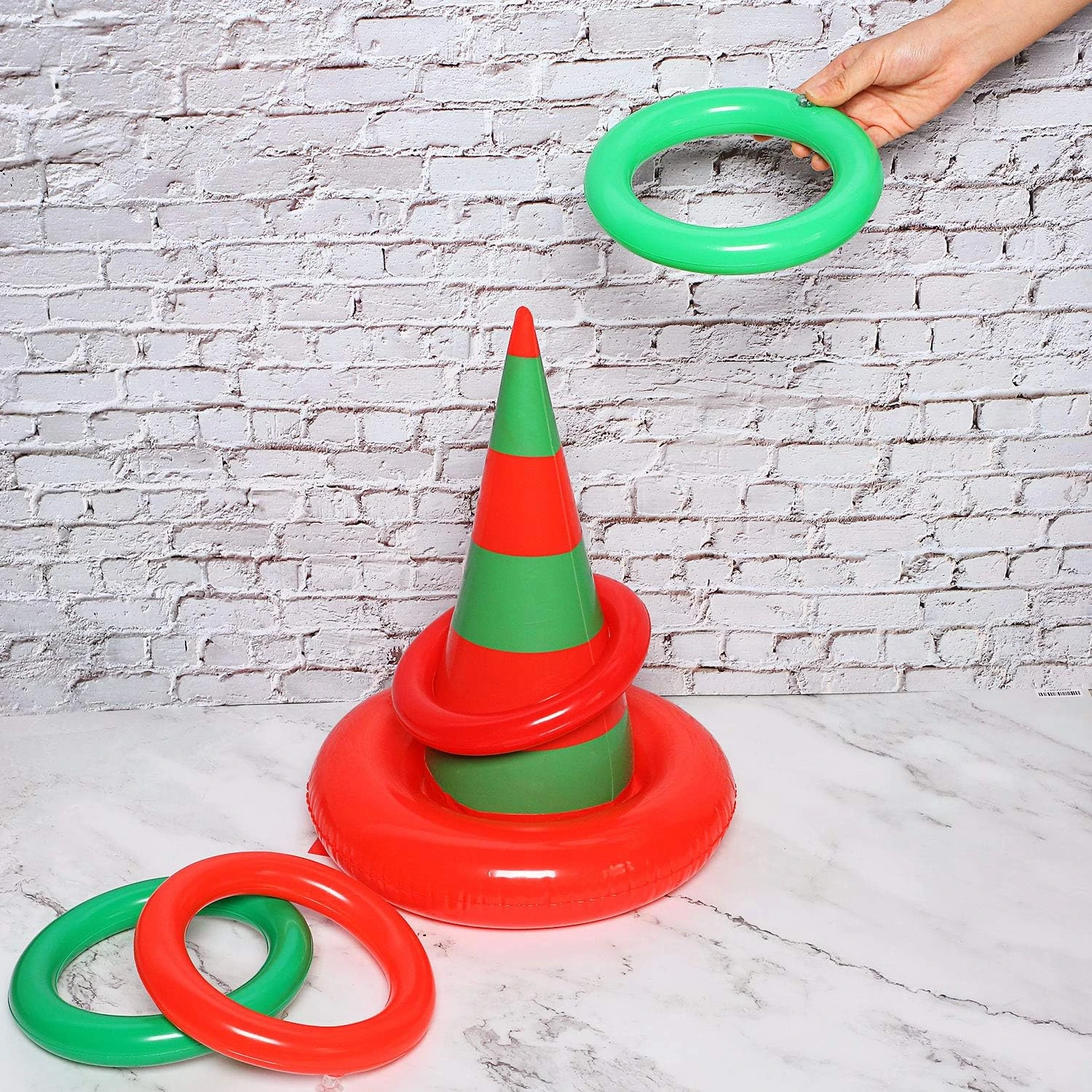 10 Pieces Christmas Inflatable Ring Toss Game, Includes 2 Pieces Inflatable Witch Hat 8 Pieces Inflatable Ring, Hat Ring Toss Game Set For Christmas Party Decoration Supplies Accessories