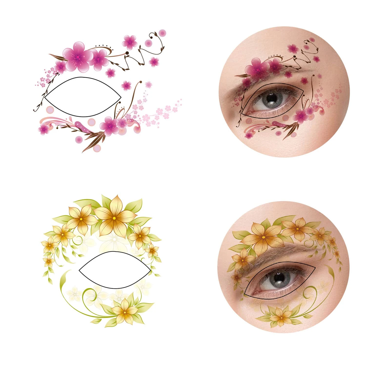- DIY Project: The graphics and patterns can be freely changed by your creativity, finally press them gently so as to fit your body. The eyes makeup tattoos kit includes numerous individual tattoo components for precise and creative placement on the face.