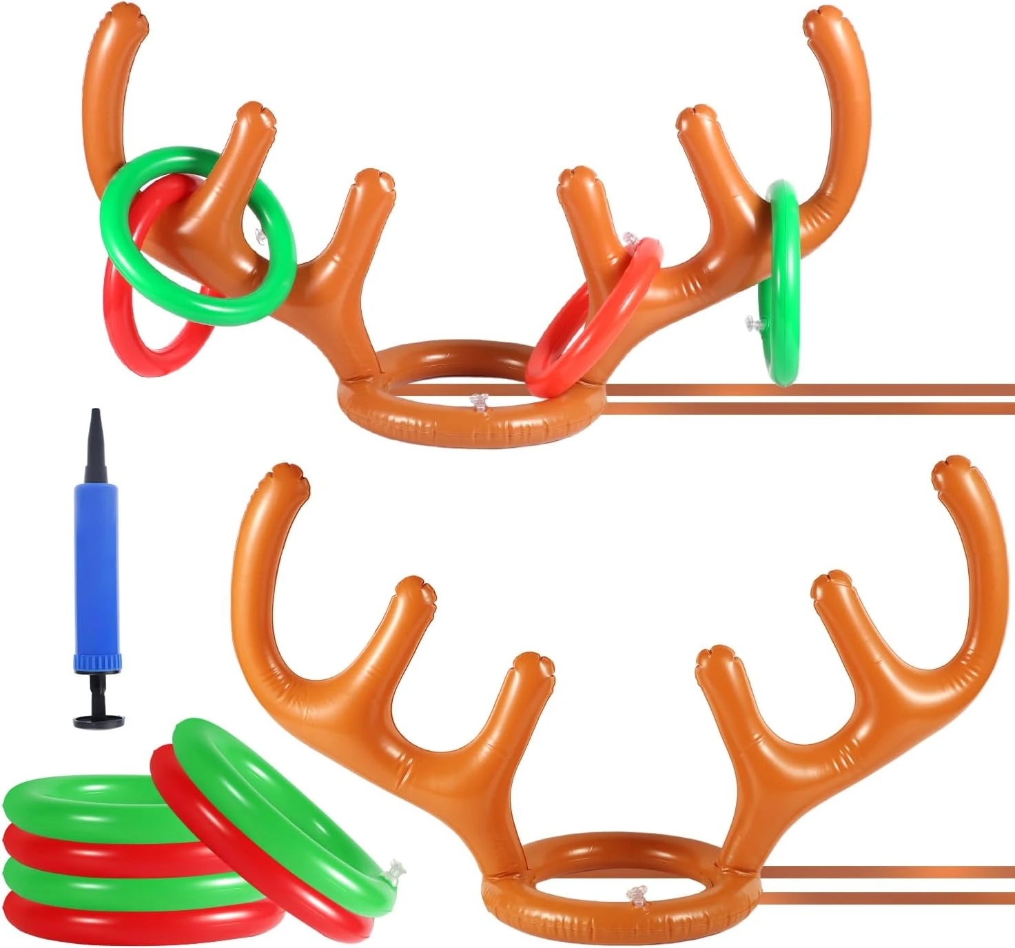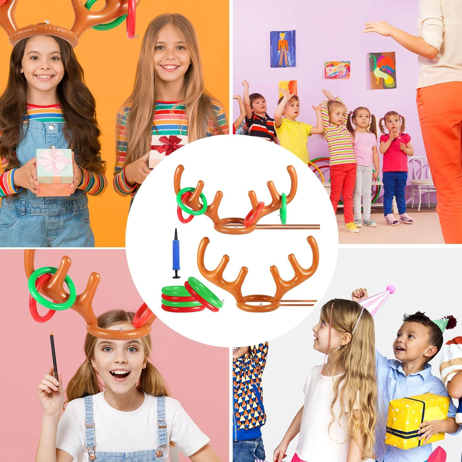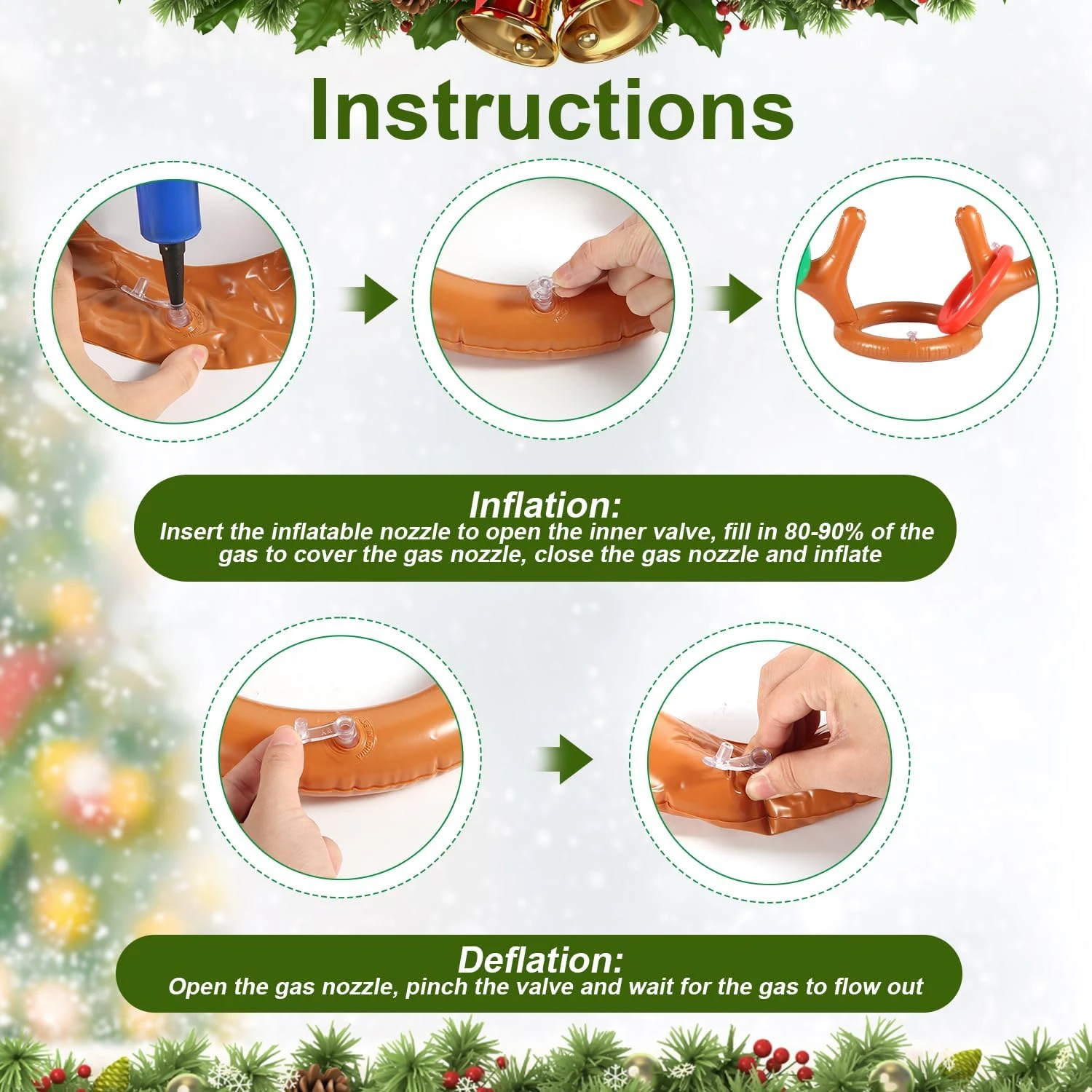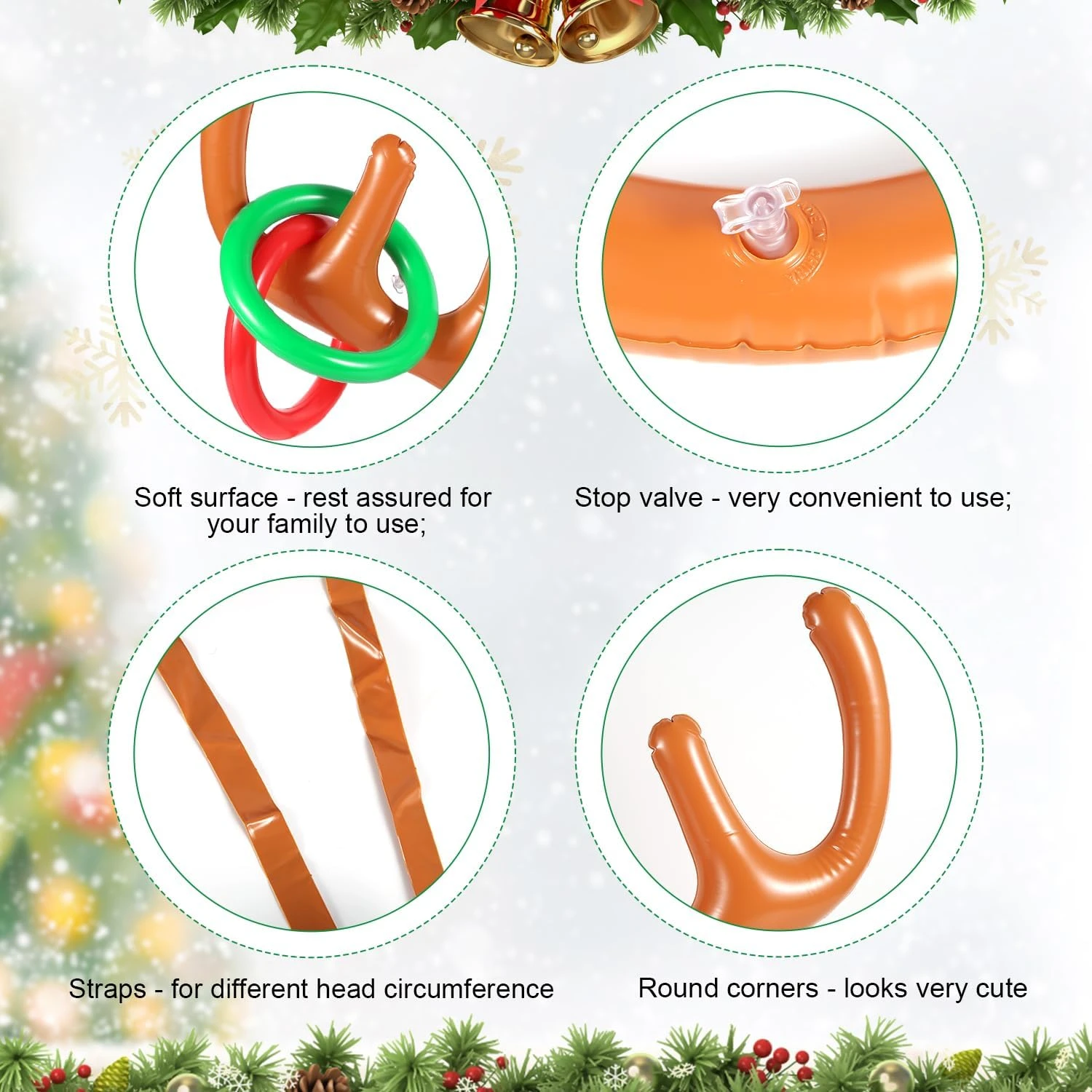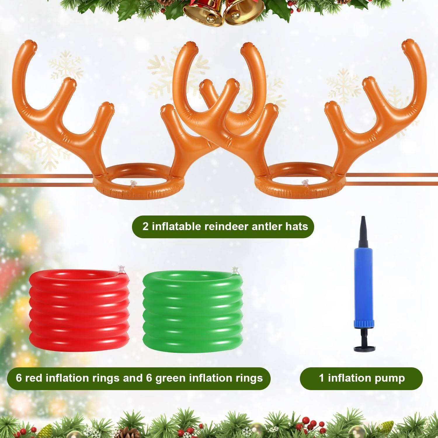 2pcs Inflatable Antlers, With 12pcs Inflatable Reindeer Ring For Toss And 1 Inflator Inflatable Reindeer Antler Game Funny Reindeer Antler Hat For Games, Christmas, Party