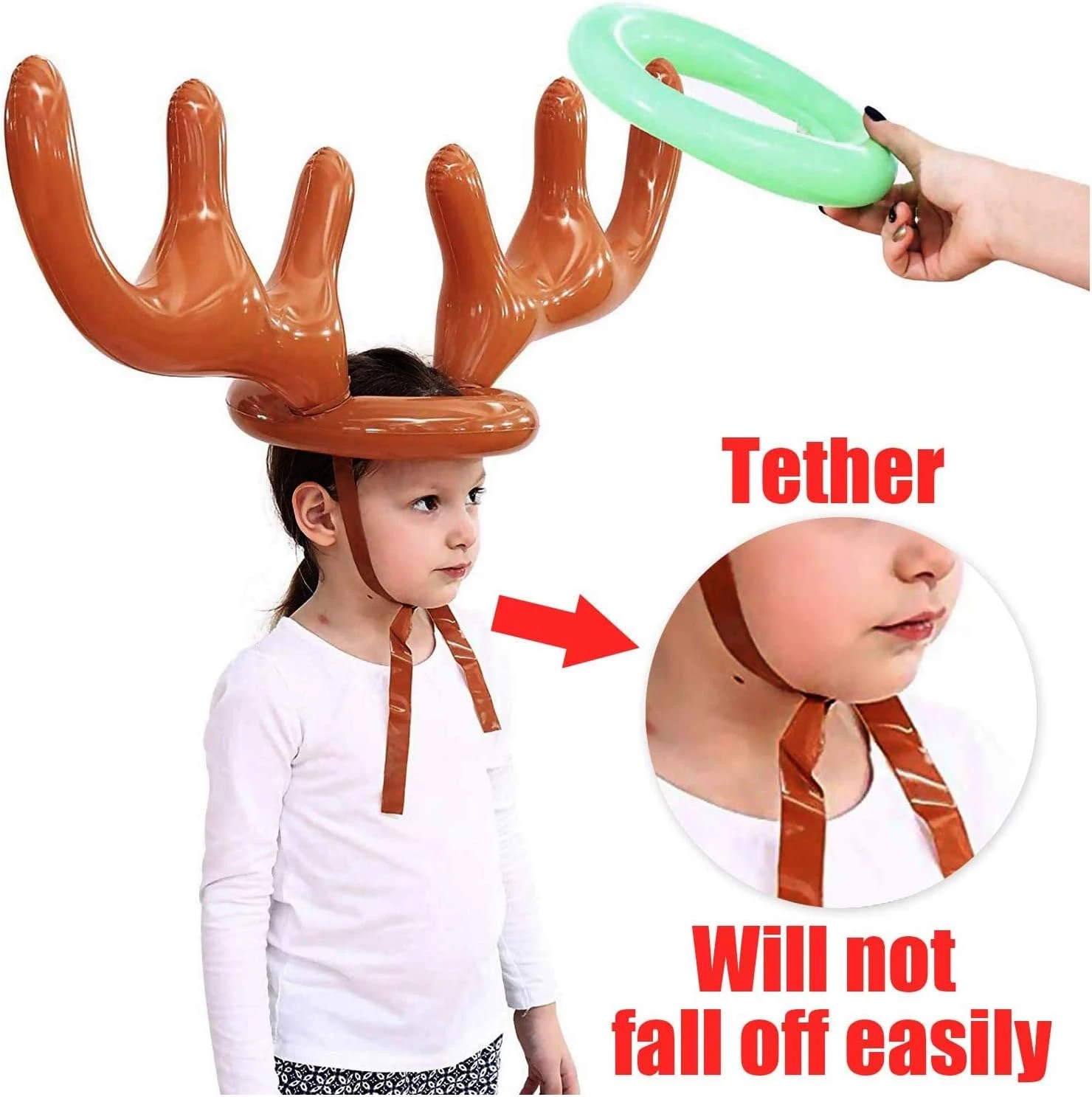 3 Pack Inflatable Reindeer Antler Hat Ring Toss Game Christmas Party Games For Kids Adults Families Carnival Games Xmas Holiday Party Supplies