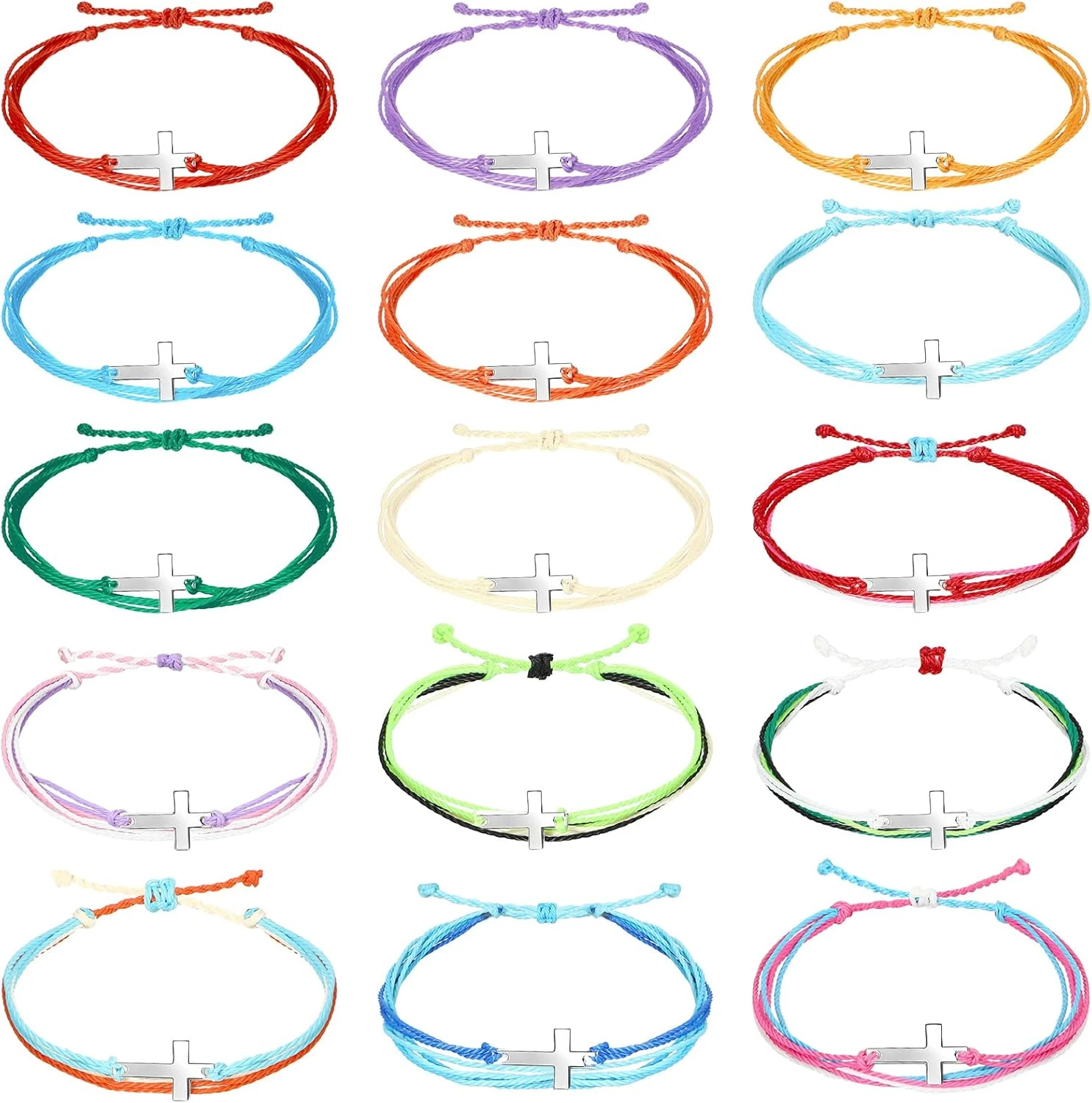 30 Pcs Cross Bracelet For Women Men, Friendship Cross Bracelet, Christian Handmade Braided Bracelet, Adjustable Nylon Rope Cross Bracelet For Boys Girls Christmas Gifts, 15 Colors