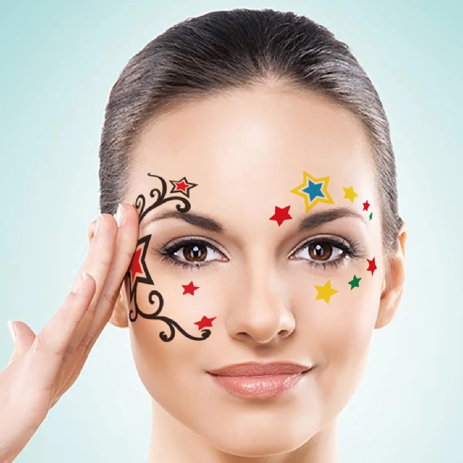 - 【SHOW YOUR OWN PERSONALITY】 This tattoo stickers are crazy, rebellious, scary and mysterious, can be used for your face, forehead, eyebrows, cheeks, around your eyes, chest, back, arms, shoulders, shank, hands and any other part of your body, even cover your scar
