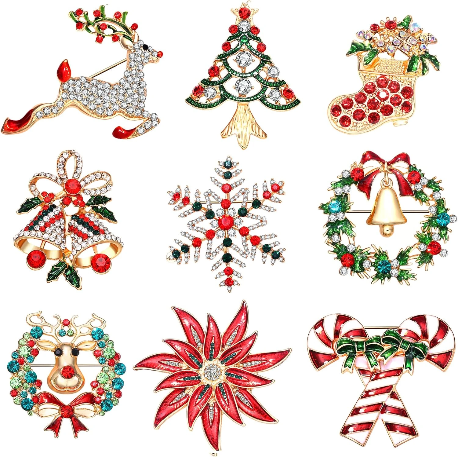 - Attractive & Festive Xmas Pins: our Christmas brooch pins are mainly made of quality alloy and some of them are with crystal and enamel, colorful and shiny, come with good workmanship, cool and comfortable tactility, sturdy and durable, not easy to fade or break, suitable for long-lasting use.