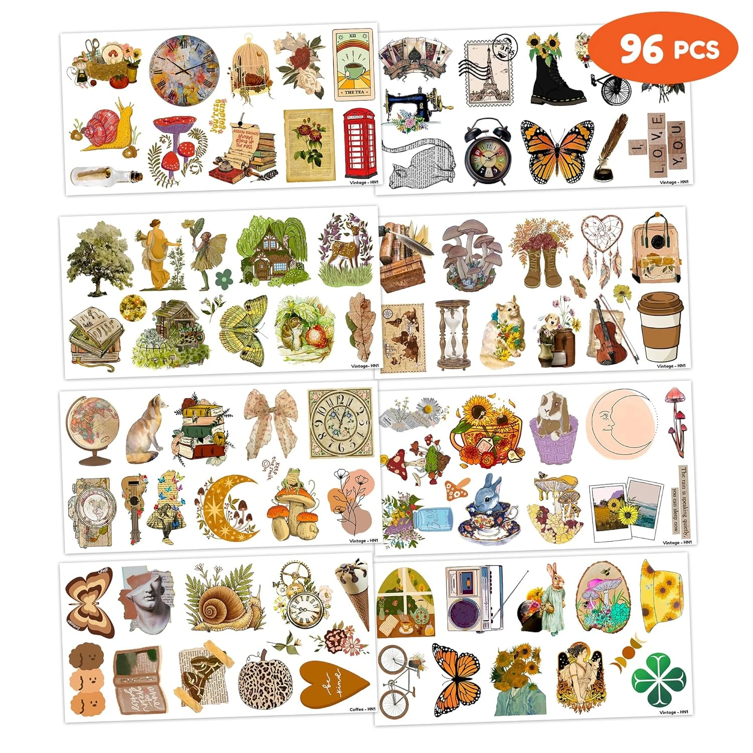 - Pattern rich: Vintage Aesthetic Temporary Tattoos for Kids include 8 Sheets 96 PCS, the size of each sheet is 6.1 * 3.1 inches. Having a variety of characteristics, shapes and vibrant colors can stimulate your children’s imaginations and bring a creative atmosphere to your Vintage Theme Party.