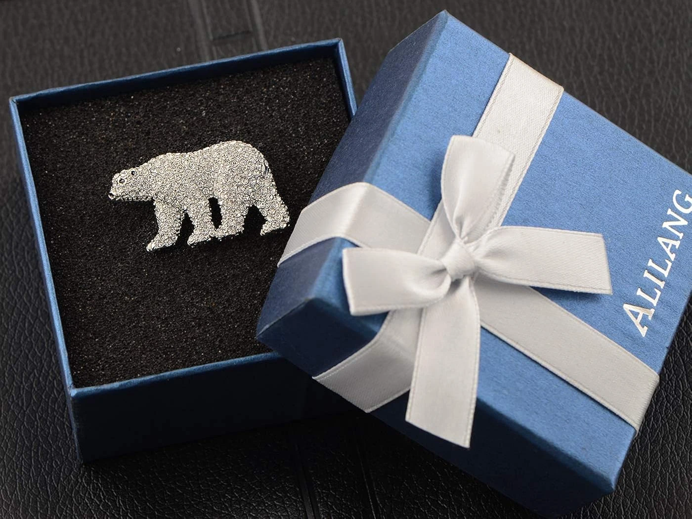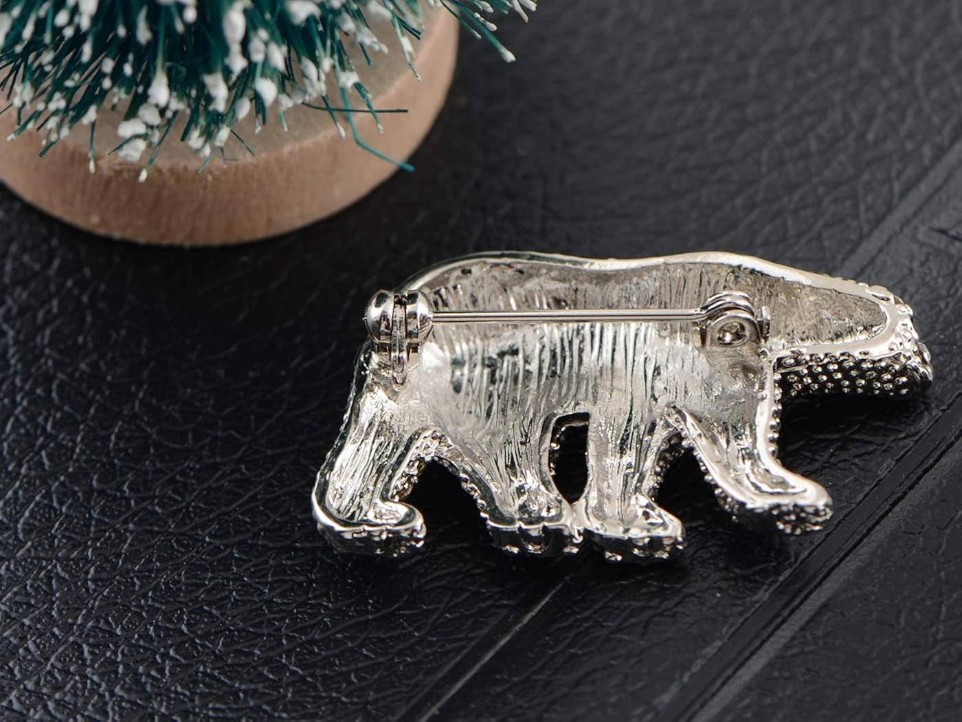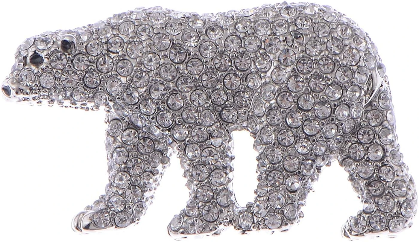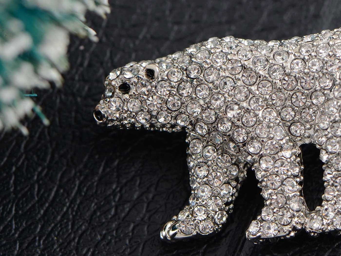 - ELEGANT DESIGN – Festive & charming this arctic animal jewelry is must have for the holiday season! Featuring a white polar bear with silver trim and all over clear crystals. Black enamel paint on the eye, nose and ears add depth to this sparkling piece!