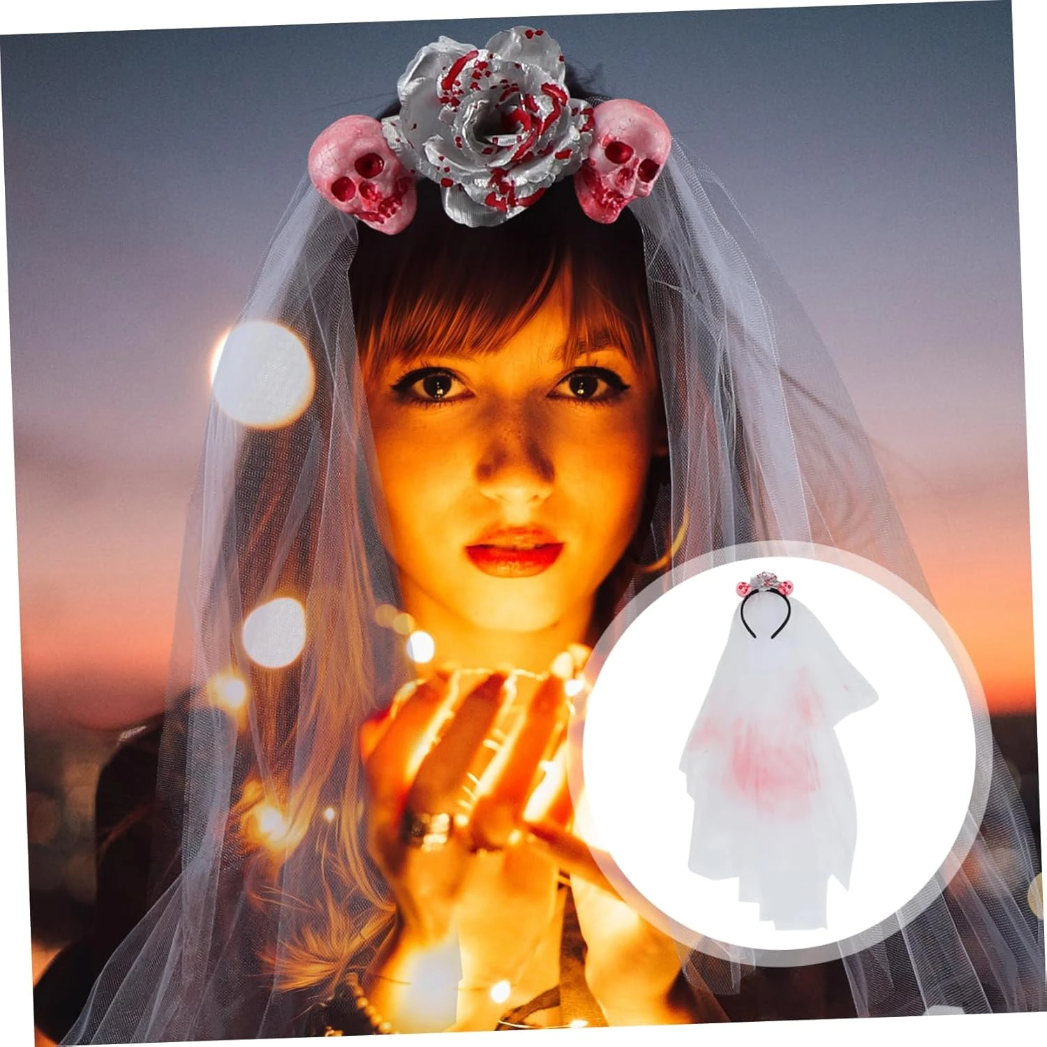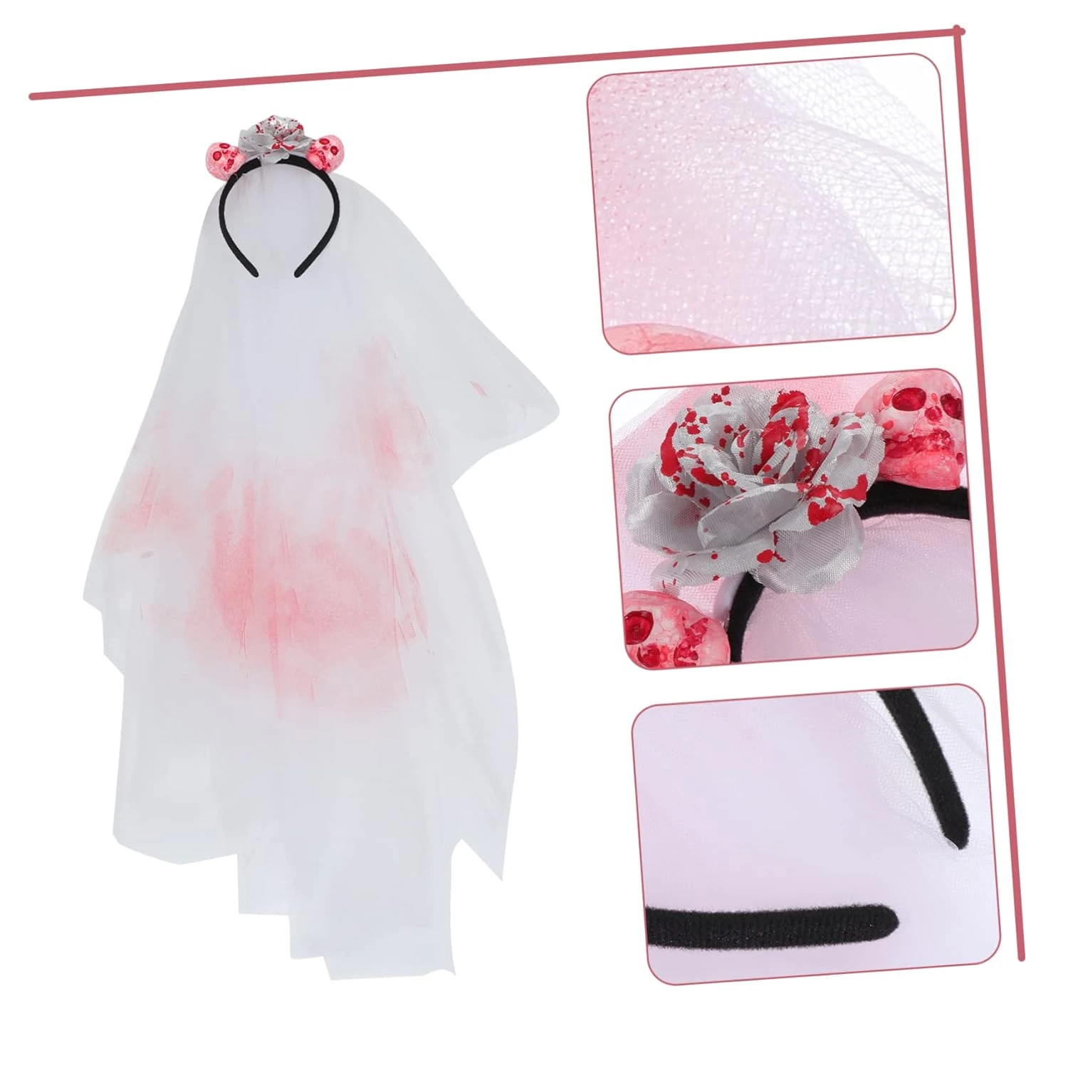 Amosfun 1Pc Halloween Headband Christmas Ornaments Headwear For Women Girls Veil Flower Veil Headband Halloween Bloody Decorations Halloween Party Headband Plastic Cosmetic Costume Demon