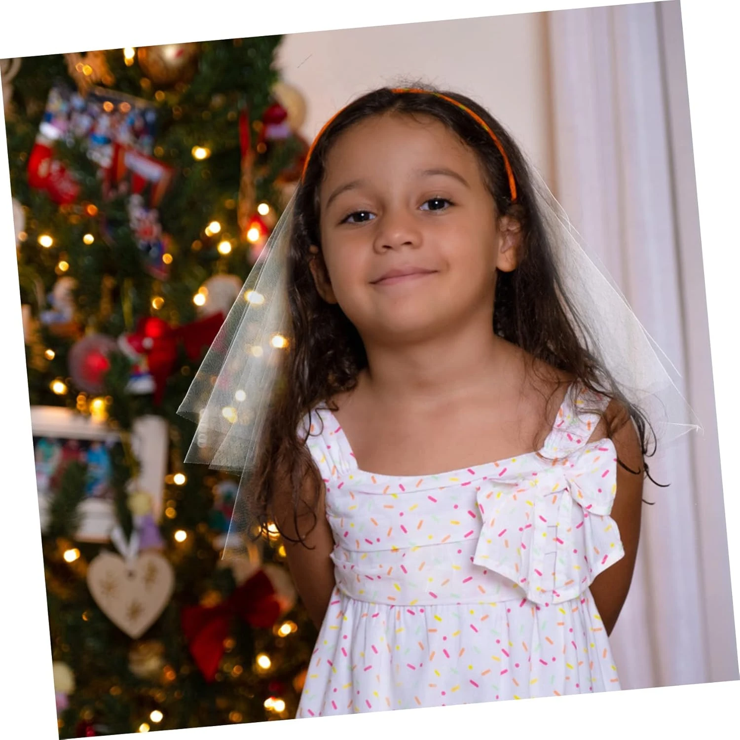 Amosfun Veil Bow Bandana Headband Headbands For Wigs Kids Hair Accessories Birthday Headdress Christmas Girl Veil Bow Hair Comb Girls Veil Hair Comb Christmas Hair Accessory Bride Bow Tie
