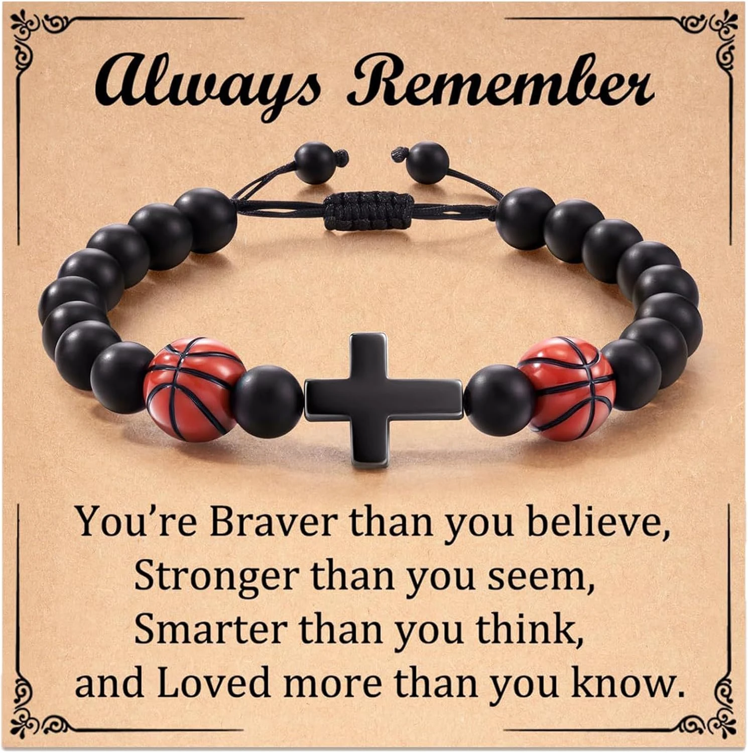- 🏀【Basketball Bracelet】This is a unique bracelet beads with two basketball patterns and a cross with heart touching message that “you are braver than you believe, stronger then you see, smarter than you think, and love more than you know”.Whether you buy it for yourself or give it to others, it will give you strength.
