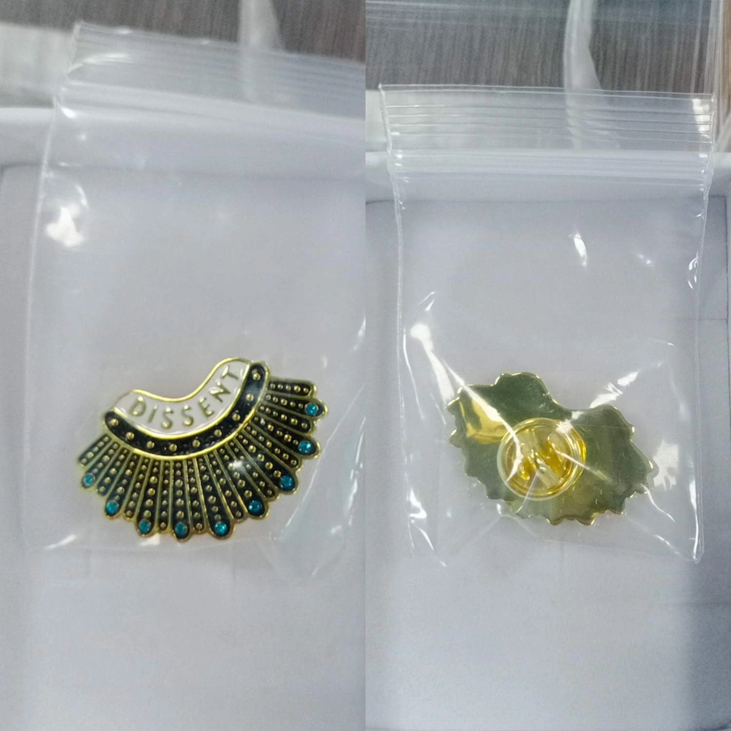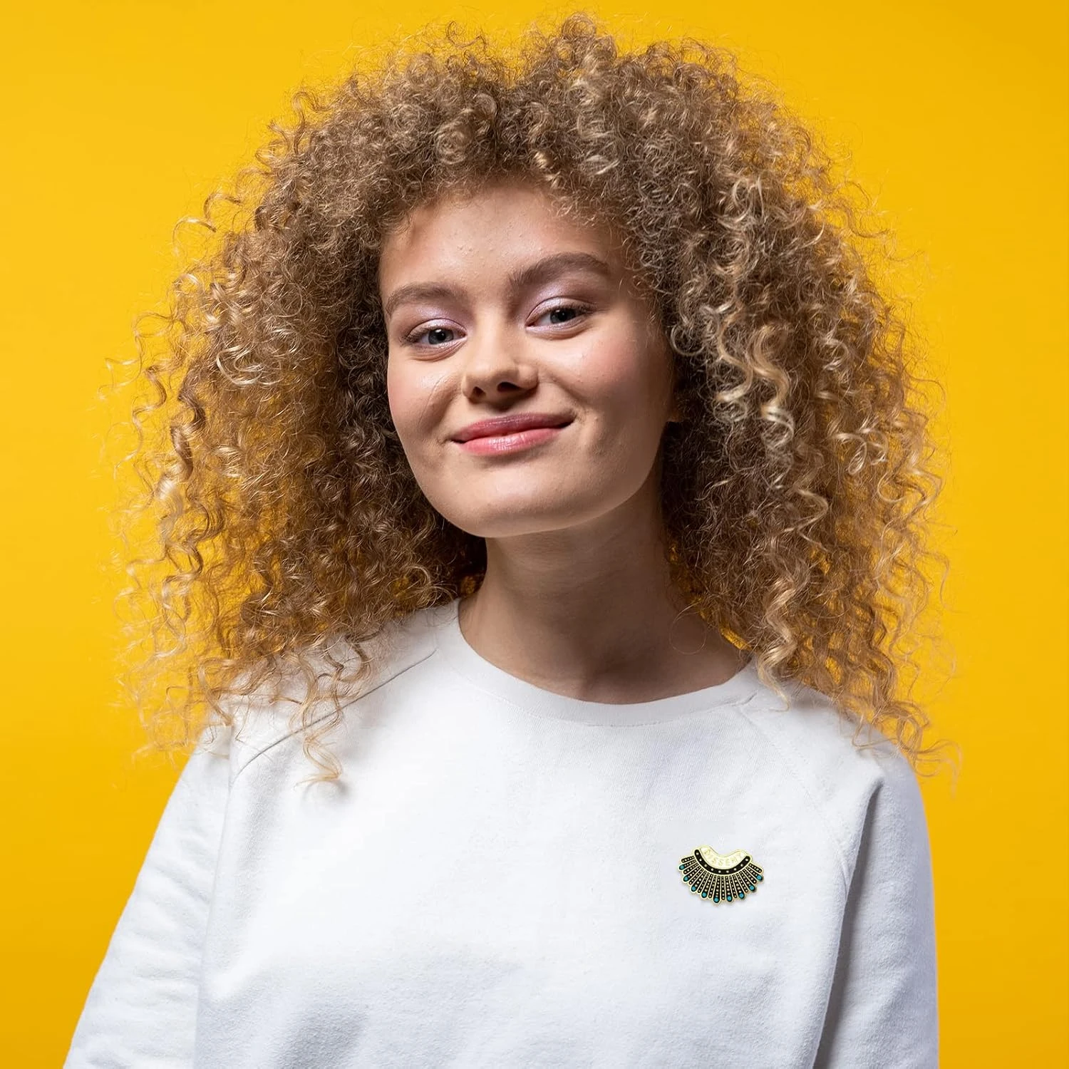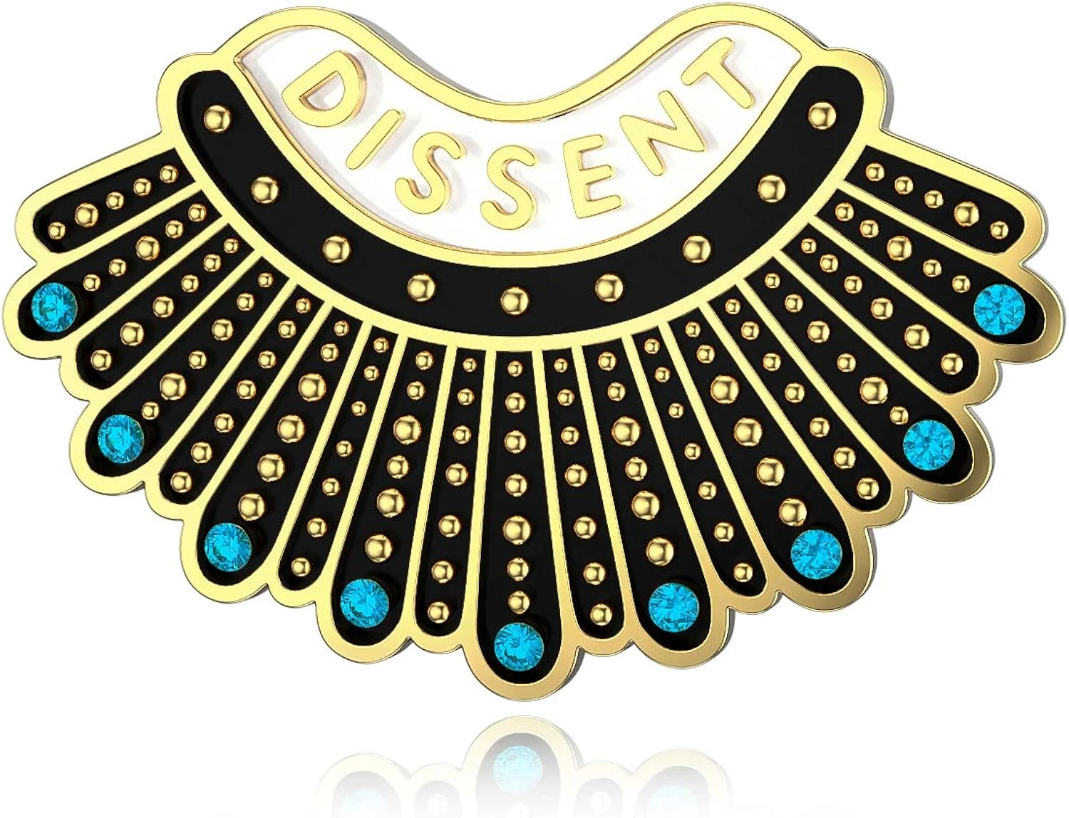 - RBG Pin for Women: Classic fan-shaped connected with gradient, inspired by the dissenter collars Justice Ruth Bader Ginsberg wears on days when she dissents from decisions being handed down by the Supreme Court. Wearing this sparkling RGB brooch will give you the power of Ruth Bader Ginsberg, a reminder to never give up.