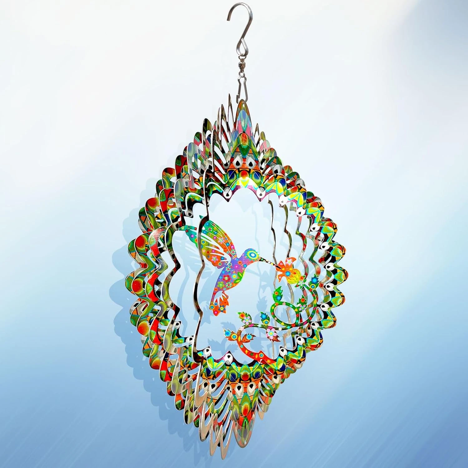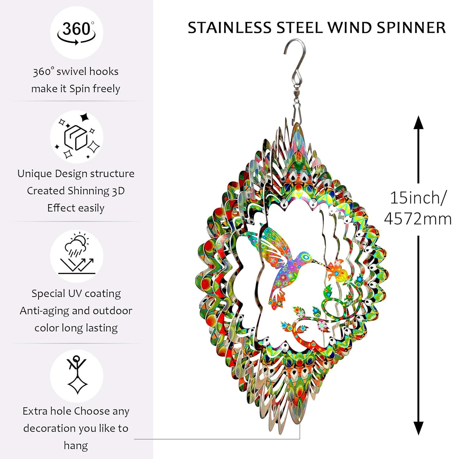 - ★【Durable and Exquisite】Our 3D Stainless Steel Hanging christmas wind spinners are made of durable stainless steel by laser-cutting technology to form vivid shape,it delivers a wave of mesmerizing patterns that will surely delight any spectator.The anti-oxidation protective coating on the surface of the mandala hummingbirds wind spinner enhances the outdoor weather resistance of the wind spinners and can be used for a long time.
