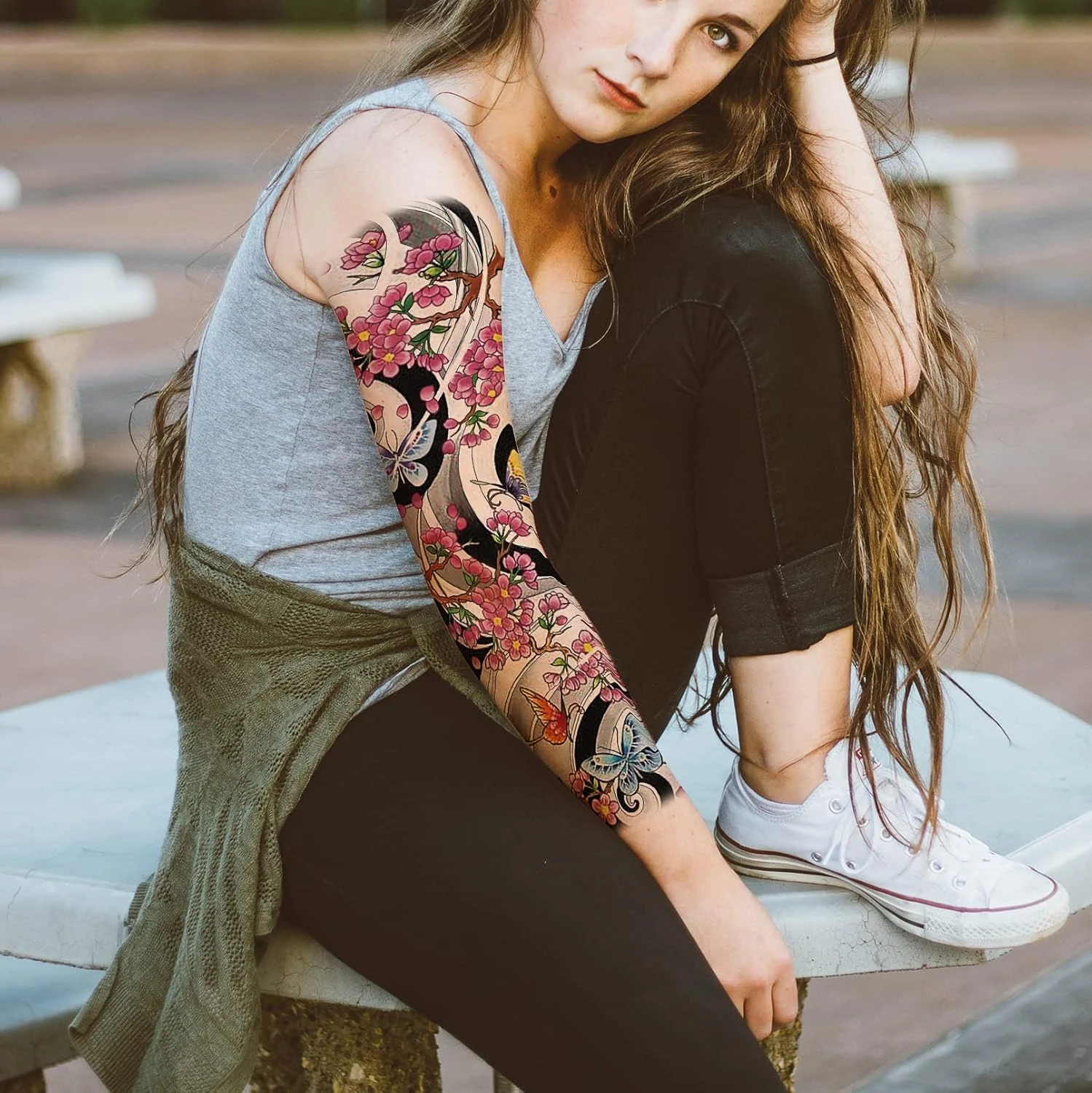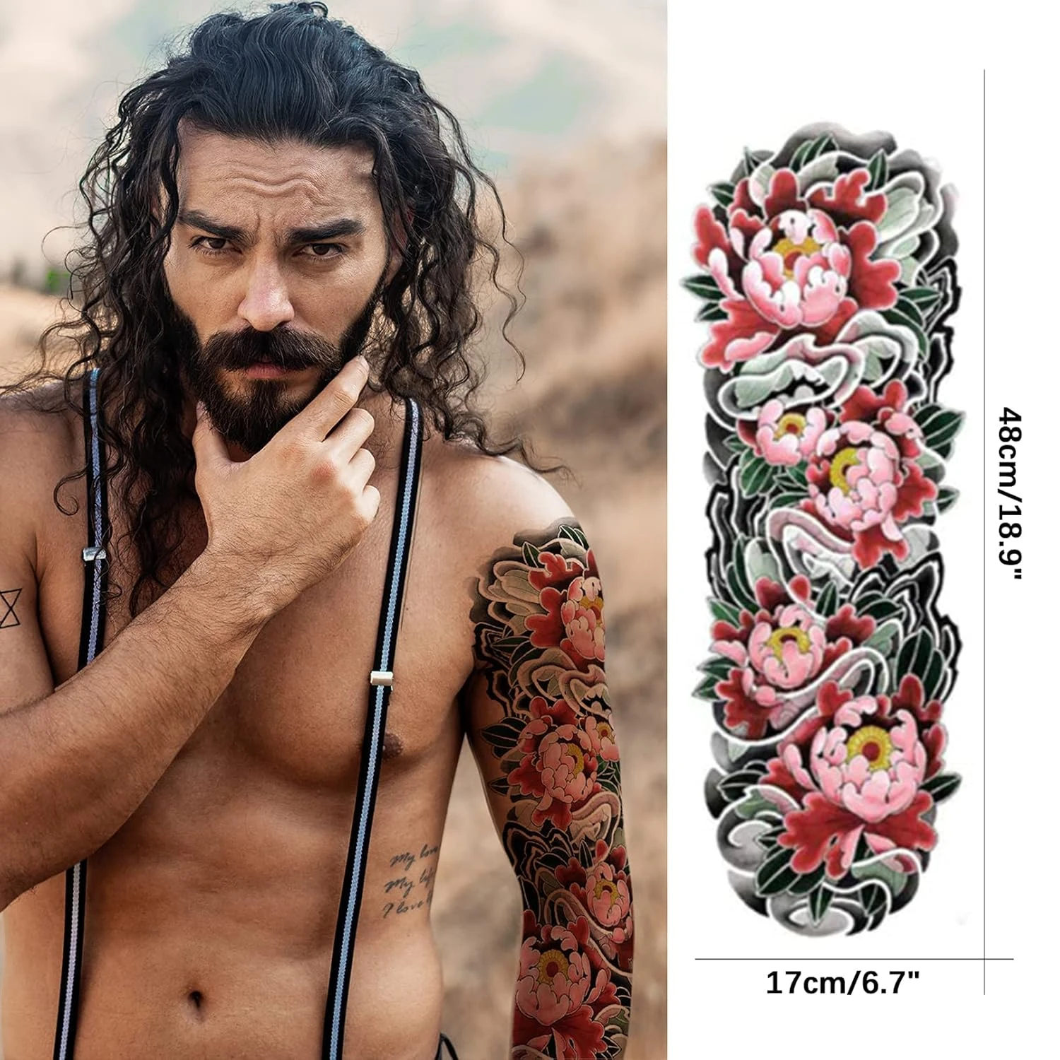 Aresvns Full Arm Temporary Tattoos For Men And Women (L19“xW7”),Temporary Tattoo Waterproof Sleeve Tattoo Last Long,Japanese Fake Tattoos For Adults Christmas Gift
