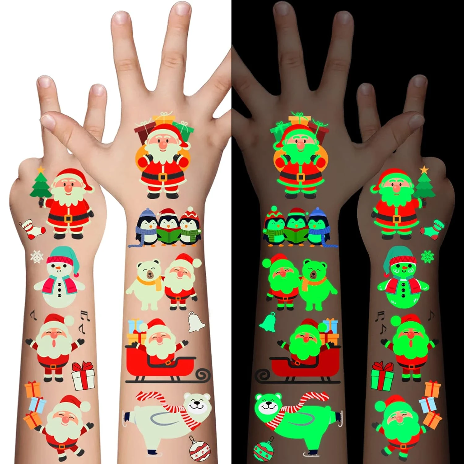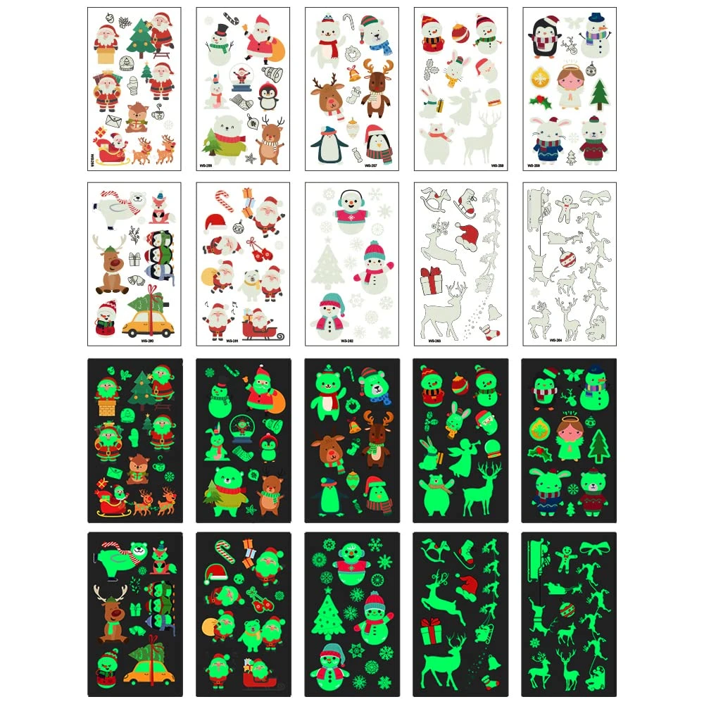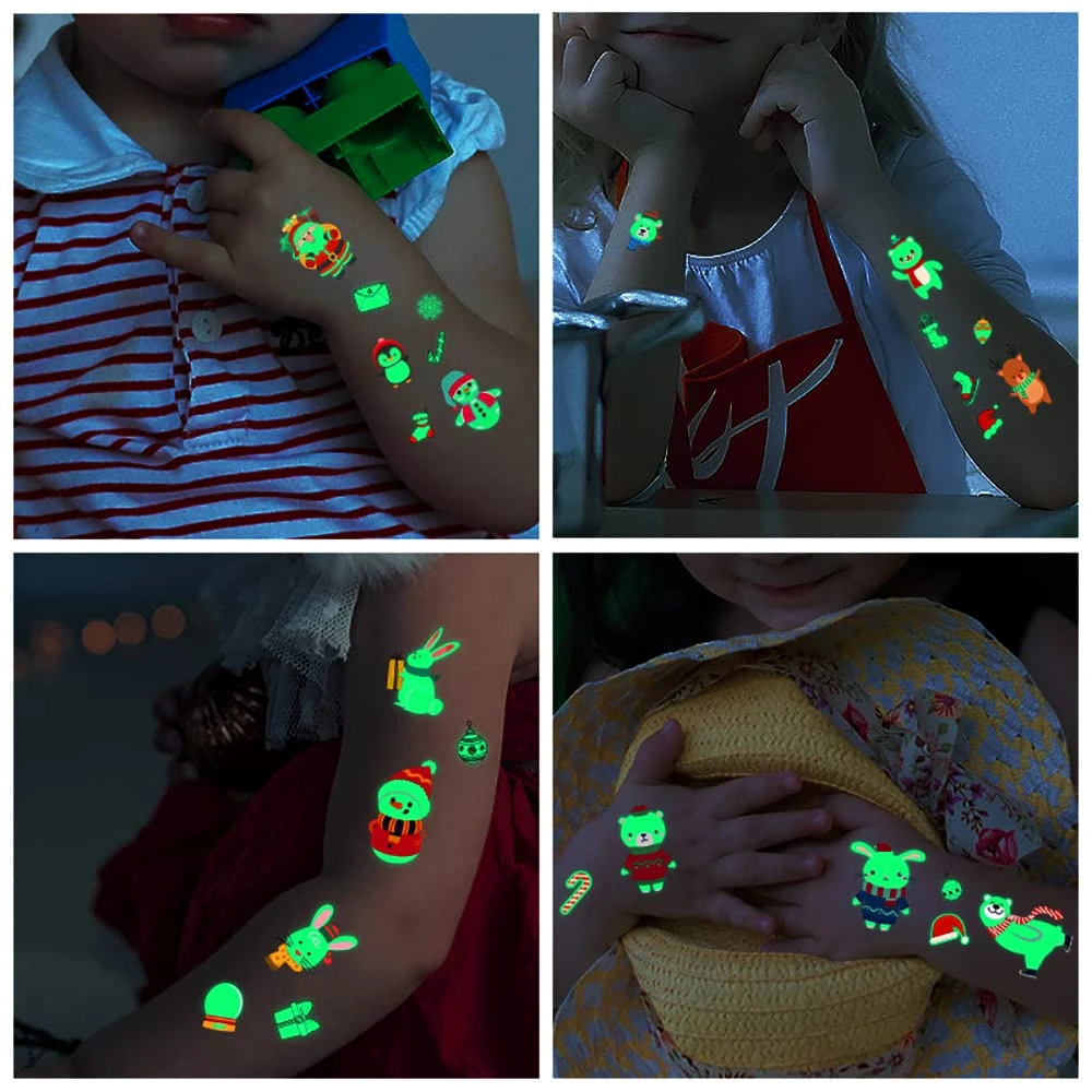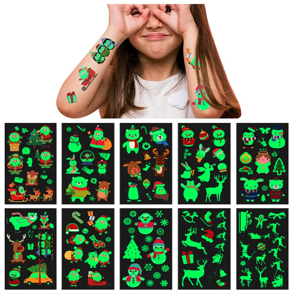 Awinmay Luminous Christmas Temporary Tattoos For Kids – 120 Pieces Christmas Glow In The Dark Tattoos For Boys And Girls,Christmas Gifts Christmas Party Favors For Kids Goody Bag Stuffers 10 Sheets