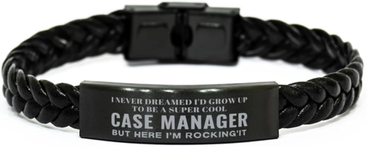 Badass Case Manager Christmas Gifts Coworker, To My Case Manager Braided Leather Bracelet Engraved Gifts, Birthday Gifts For Case Manager I Never Dreamed I’d Grow Up To Be A Super Cool Case Manager