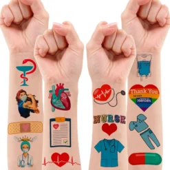 GENERIC Nurse Temporary Tattoo Birthday Themed Party Decorations Supplies Favors Cute Nursing Tattoos 8 Sheets 96 PCS Gifts For Kids Girls Boys Decor Class School Prizes Rewards Carnival Christmas