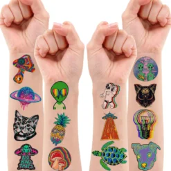 GENERIC Trippy Psychedelic Holographic Stickers Tattoos Temporary Tattoo Birthday Party Decorations Decor Supplies Favors 8 Sheets 96 PCS Gifts For Adults Kids Boys Girls Classroom Rewards Prizes Christmas