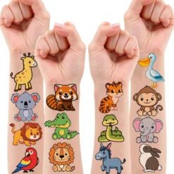 GENERIC Zoo Temporary Tattoos Safari Jungle Party Decorations Favors Supplies Woodland Theme Birthday Stickers Tattoo 8 Sheets 96 PCS Gifts For Girls Boys Kids Decor Class School Prizes Carnival Christmas