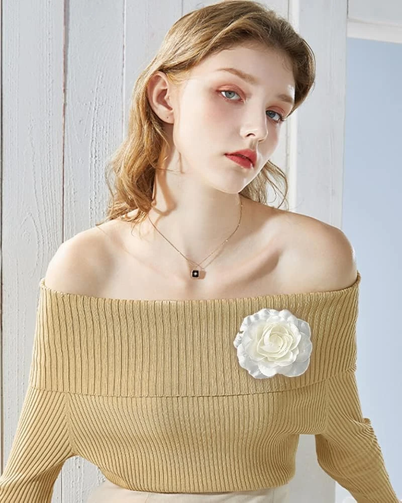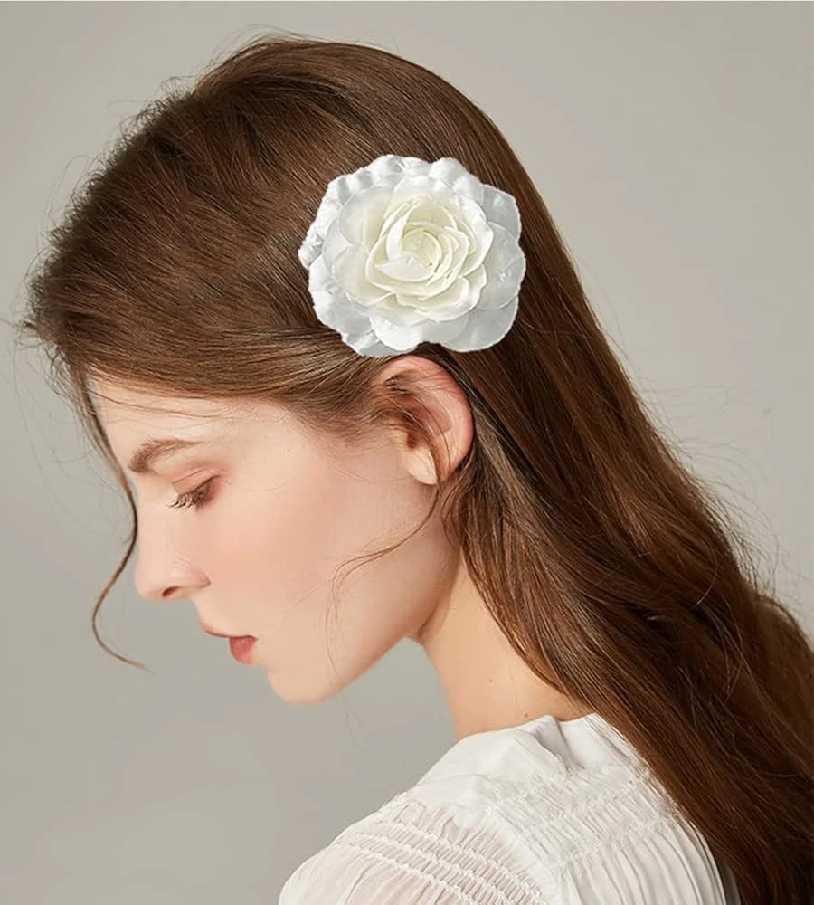- Layered sturdy fabric petals camellia flower use for hair clip and brooch pin backing. Design with a hair pin that can fixed in anywhere in your hair and a clip that can be used in your clothing.