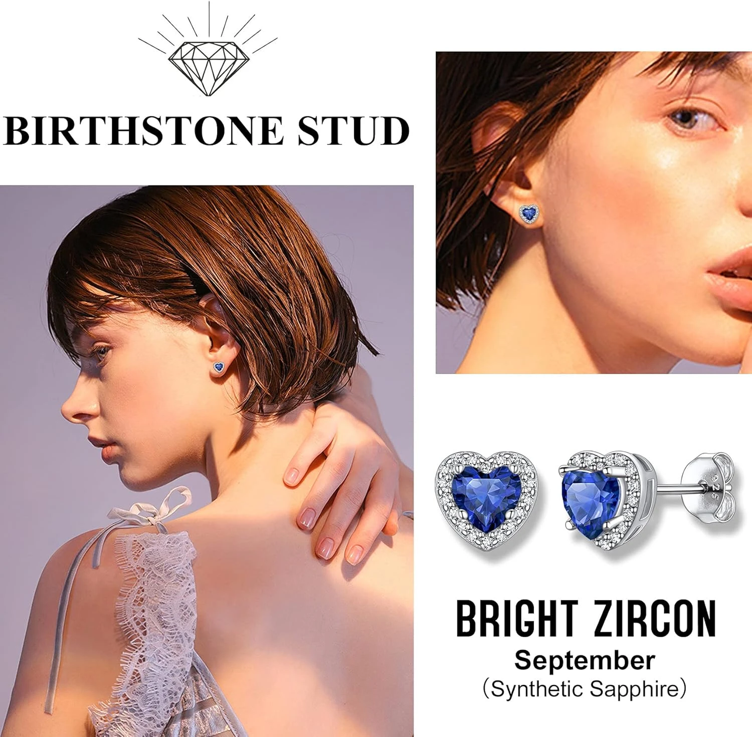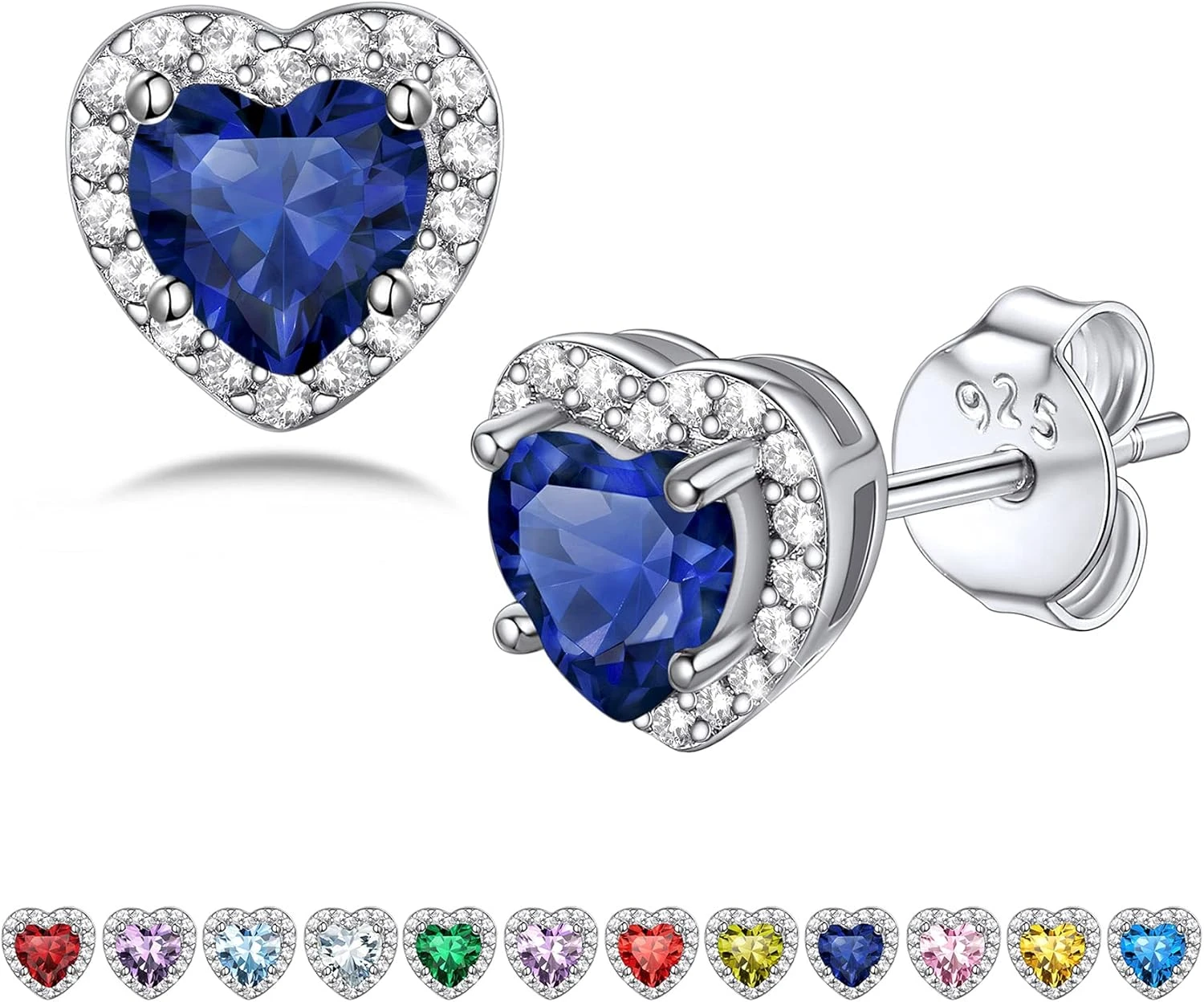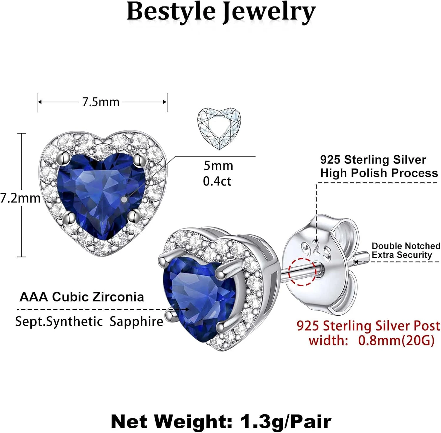 Bestyle Sparkling 925 Sterling Silver Birthstone Stud Earrings For Women, Heart/Round/Teardrop/Square Crystal Solitaire Diamond Studs Halo Earrings, Great Birthday/Christmas Gifts
