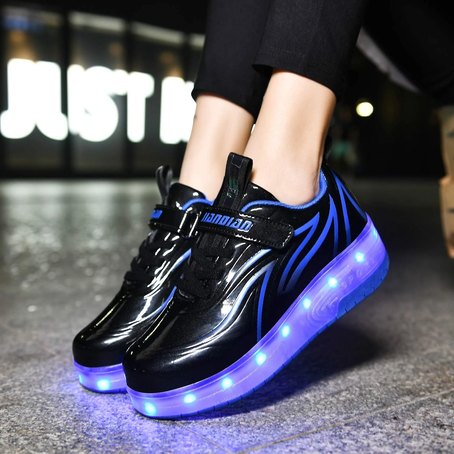 - ✪Safe&Comfortable Material: Fashion led roller shoes for kids, made of smooth PU upper, waterproof TPR outsole, non-toxic synthetic.
