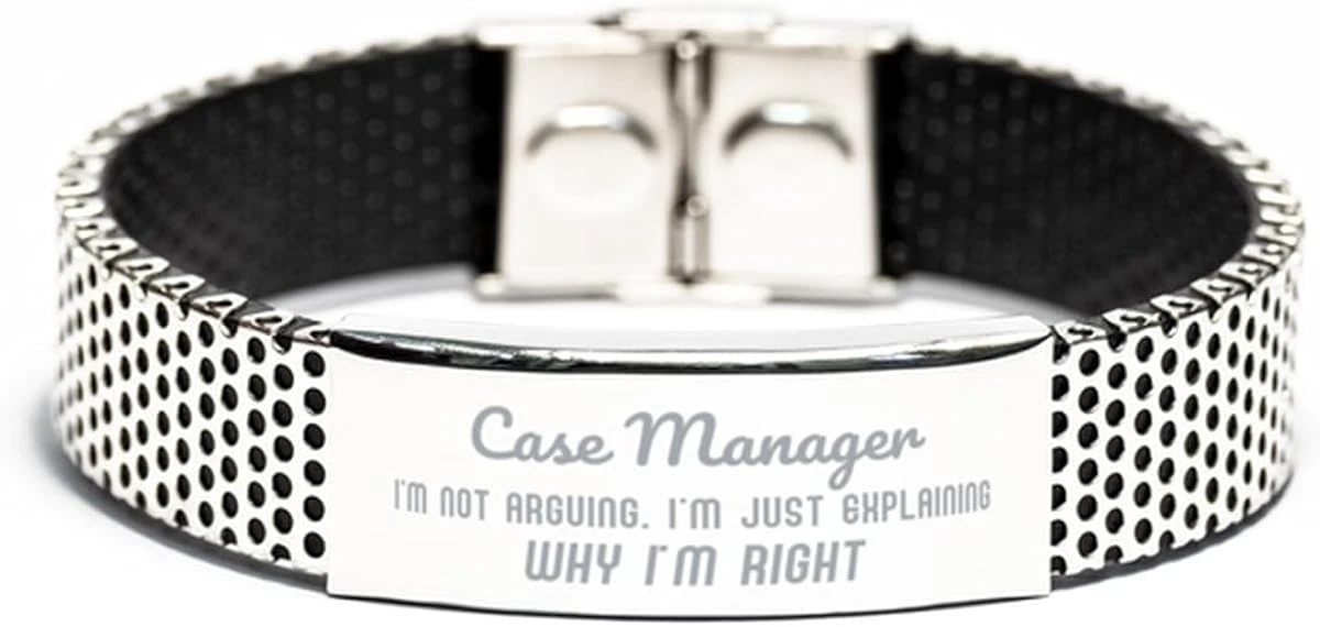 Case Manager I’m Not Arguing. I’m Just Explaining Why I’m RIGHT Stainless Steel Bracelet, Funny Saying Quote Case Manager Gifts For Case Manager Graduation Birthday Christmas Gifts For Men Women