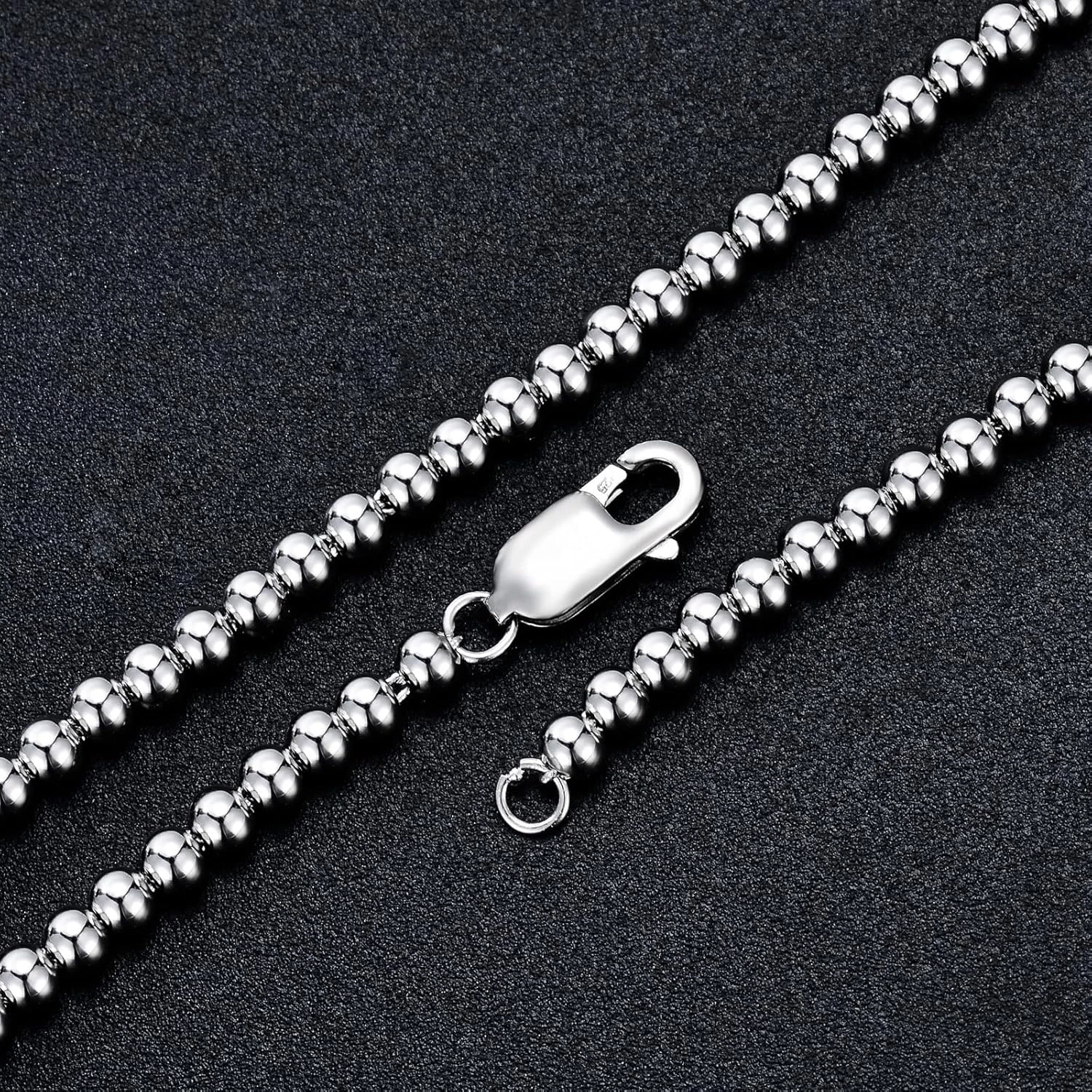 CEKAMA 925 Sterling Silver Bead Ball Dog Tag Chain For Men & Women Silver Bead Chain Necklace Silver Ball Chain Necklaces 3.0MM, 18 – 26 Inch Jewelry Gifts For Christmas Valentine’s Day Mother’s Day Father’s Day
