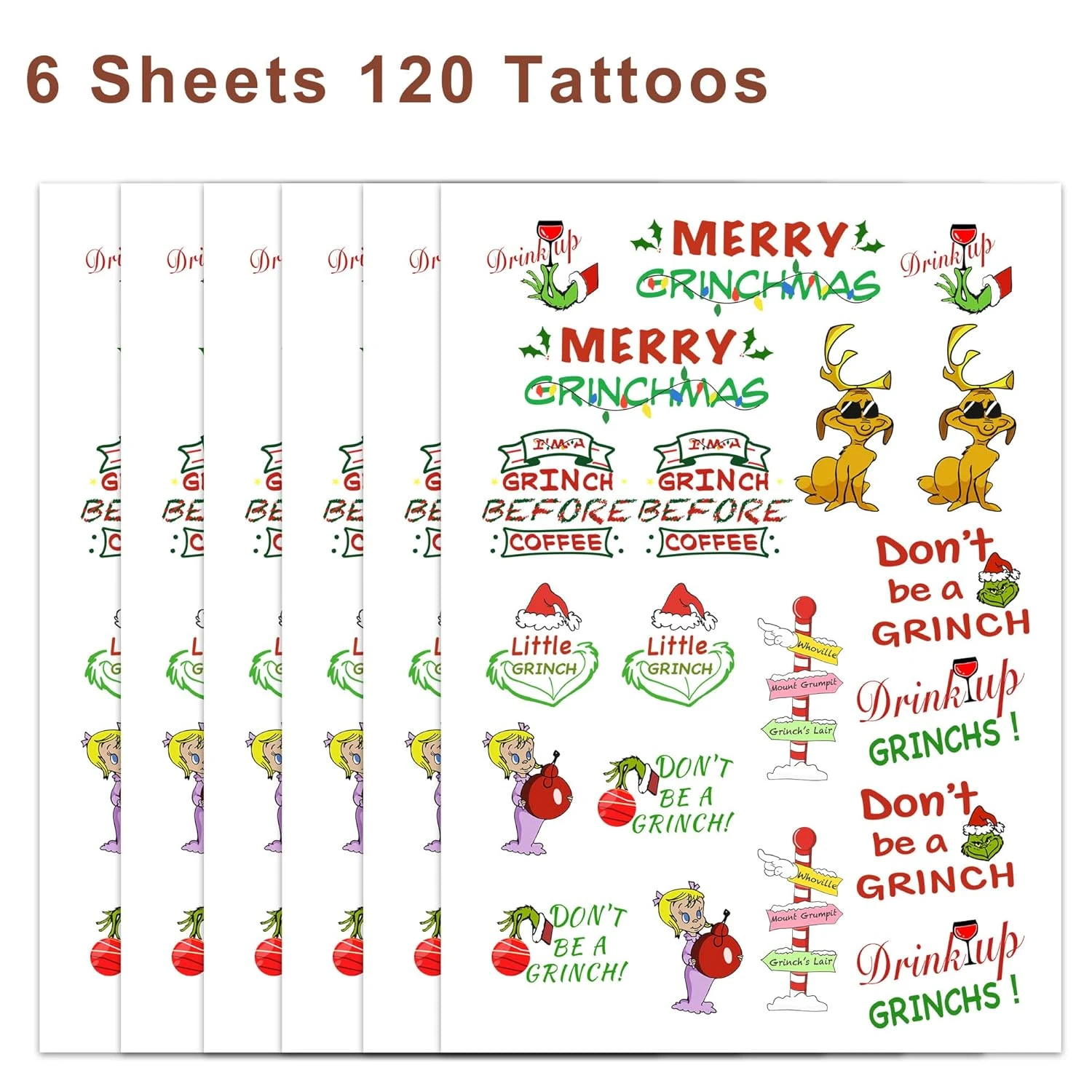 - Christmas Tattoos Stickers: 6 Sheets Christmas tattoos stickers, 120pcs Pattern Christmas Tattoos Stickers for Party favors with a variety of Christmas themed characters, which can increase children’s imagination and creativity.