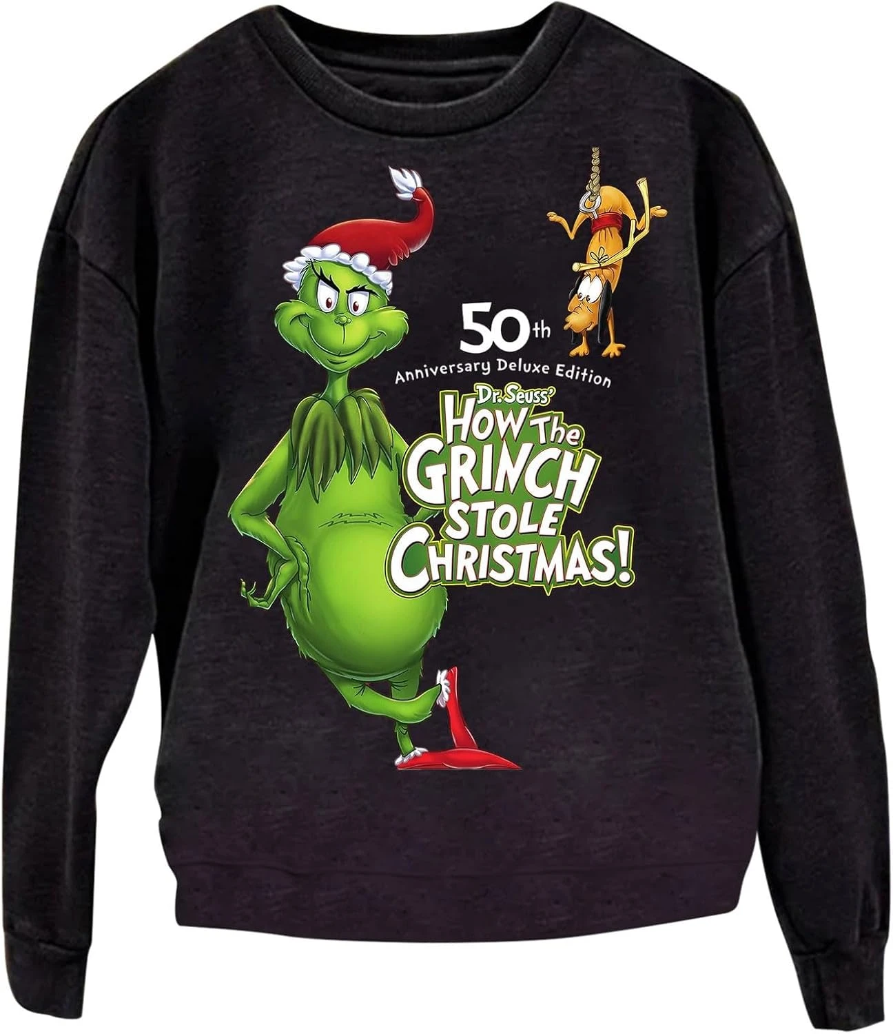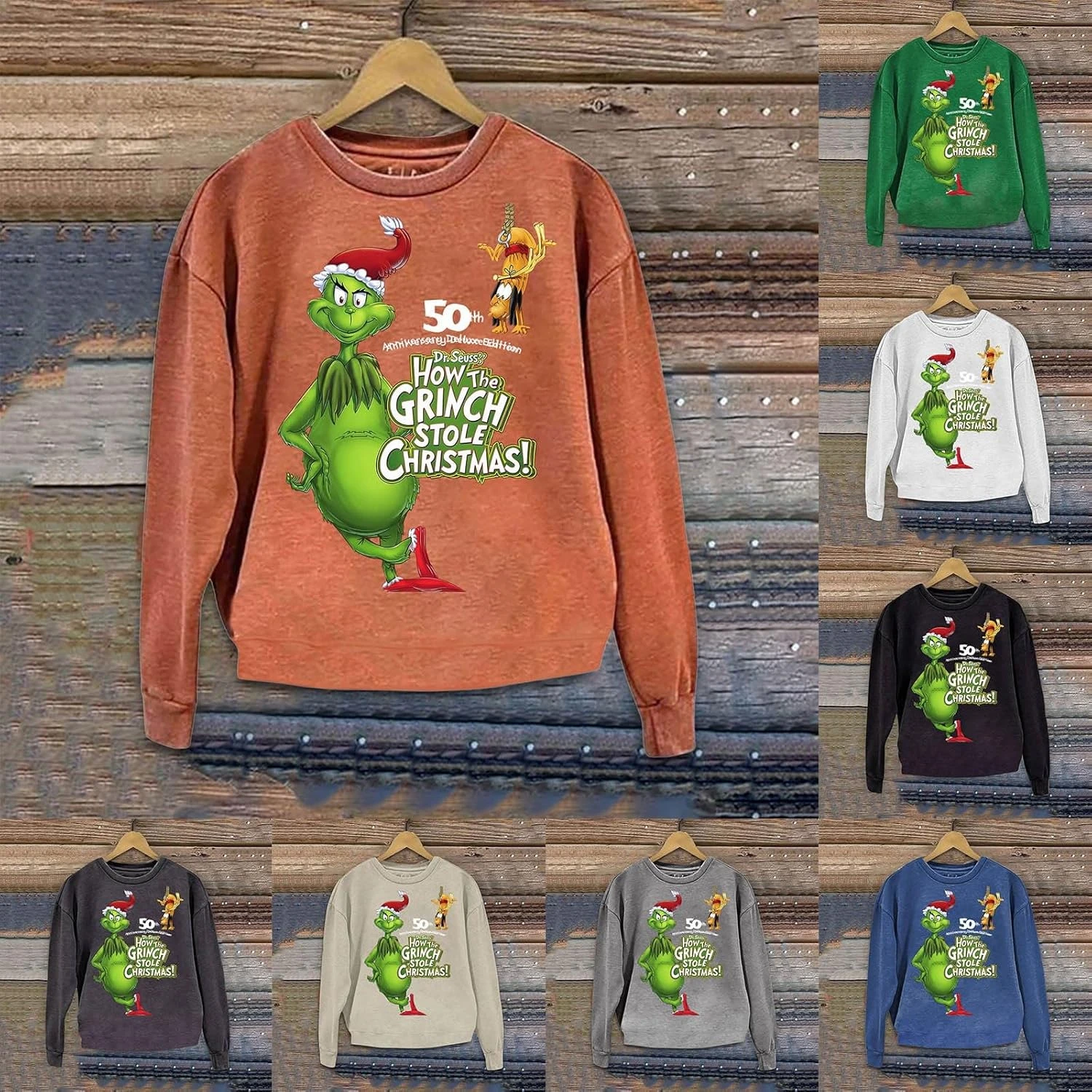 CLARIDGE Women Casual Christmas Sweatshirt Long Sleeve Round Neck Fall Lightweight Sweaters Loose Xmas Printed Pullover Tops