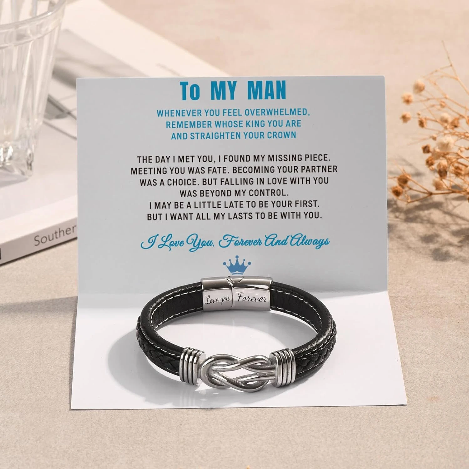 Coolvy Husband Gifts From Wife, To My Man I Love You Forever And Always Bracelet, Mens Braided Leather Bracelets, Boyfriend Anniversary Birthday Christmas Fathers Gifts For Men