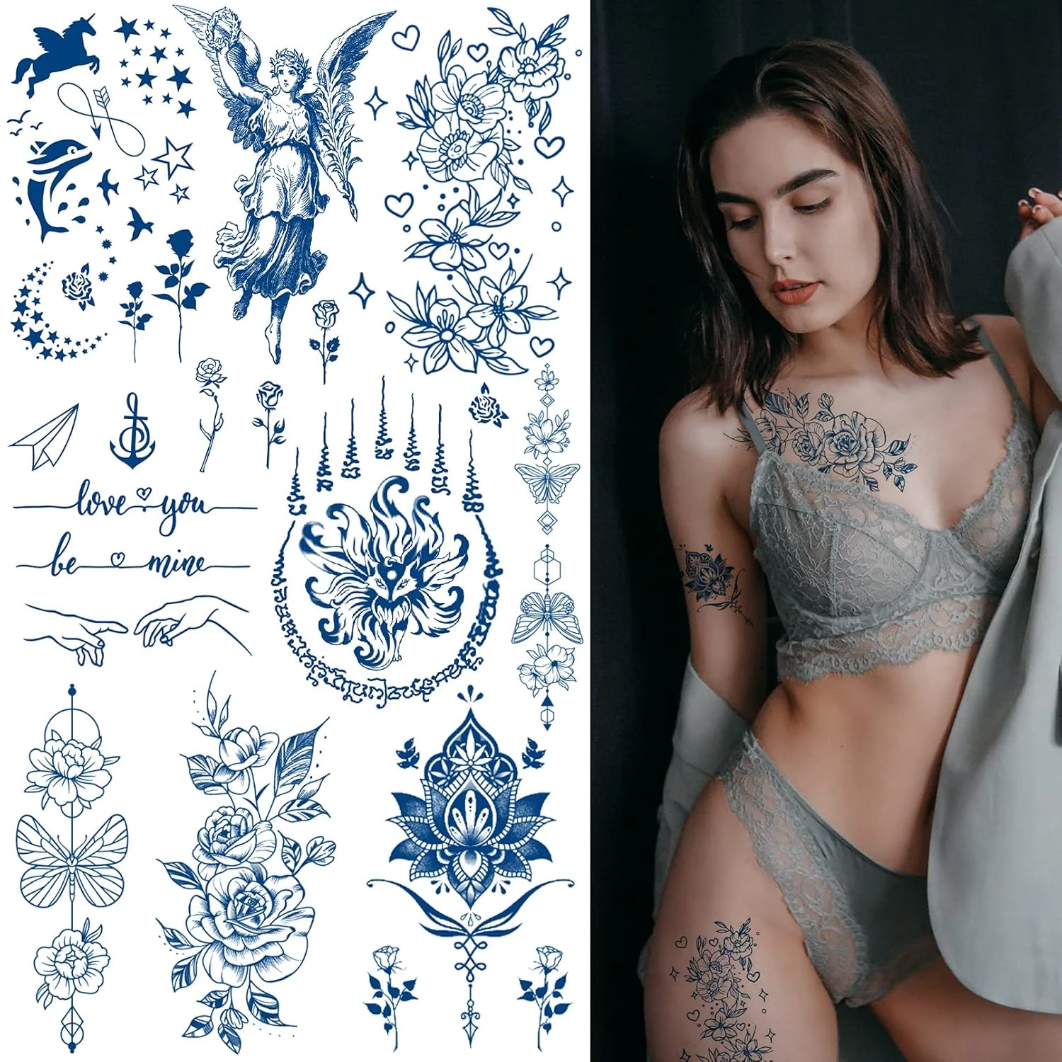 Shop CUTELIILI Semi Permanent Tattoos for Women Girls,Temporary Tattoo Flowers Waterproof & Long-Lasting 1-2 Weeks, Dark Blue Realistic Fake Tattoos Christmas Gift online at a best price in UK. Get special offers, deals, discounts & fast delivery options on international shipping with every purchase on Ubuy UK. B098QG6FGW