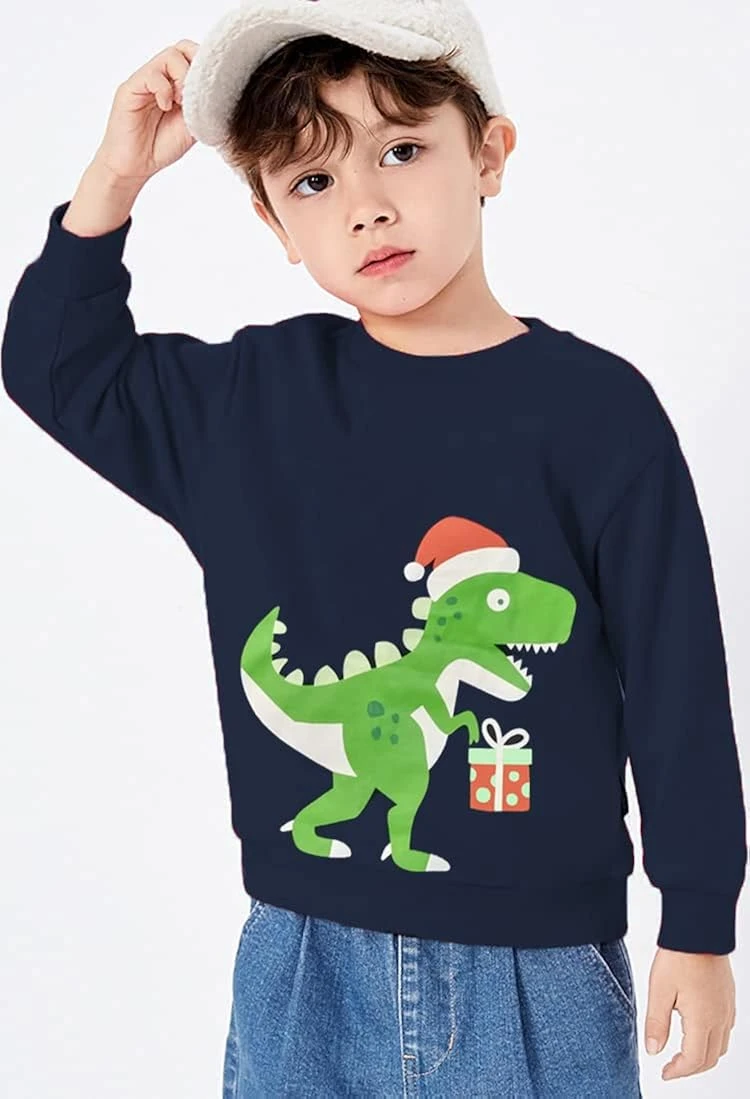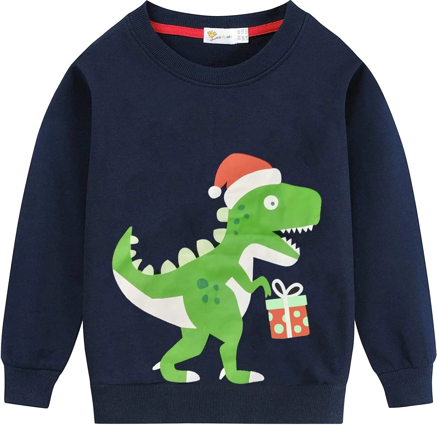 DDSOL Toddler Little Boy Girl Christmas Sweatshirt Kid Xmas Ugly Reindeer Santa Dinosaur Shirt Clothes Long Sleeve Tee Tops