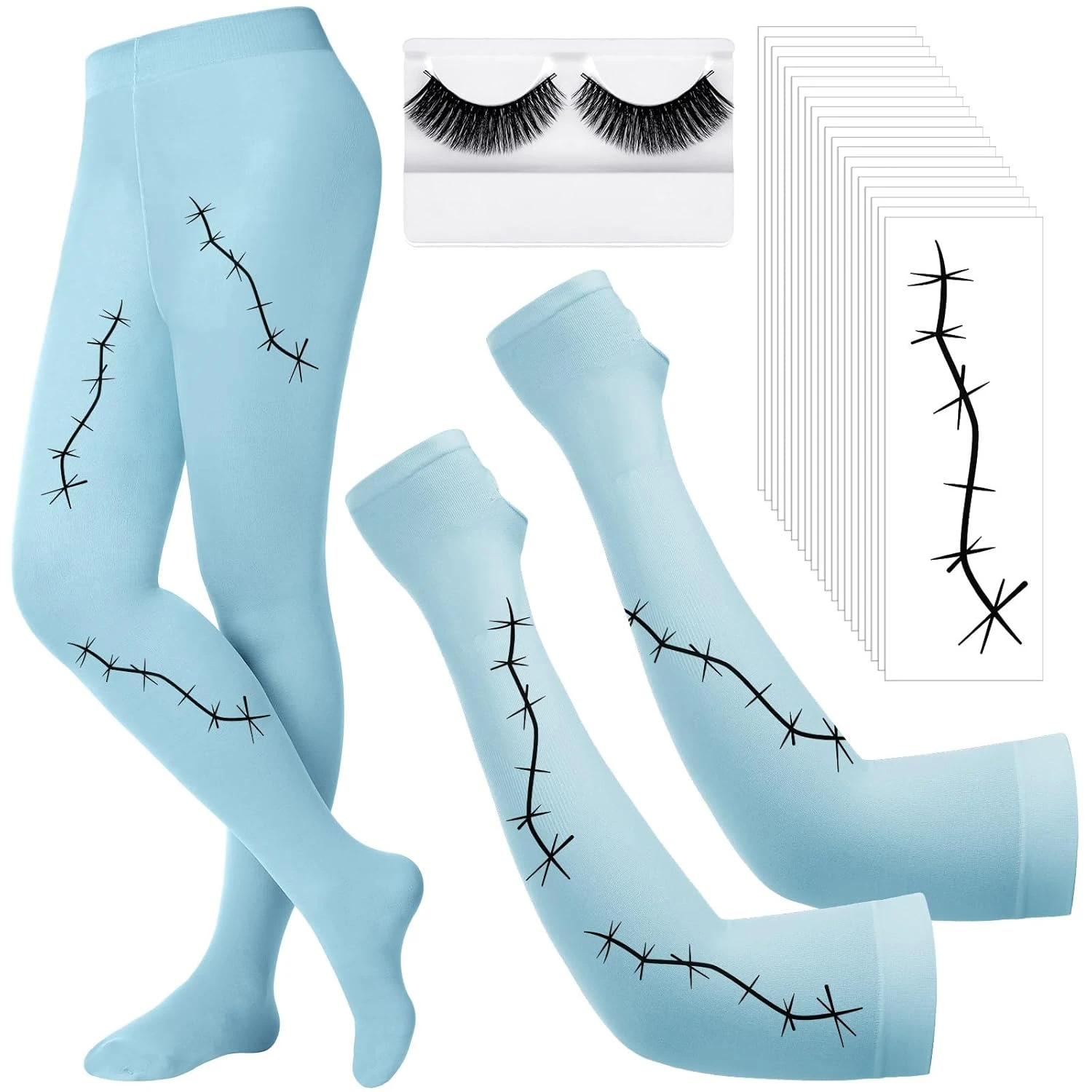- Nice Combination: you will receive 1 piece of solid colored opaque footed tights, 1 pair of arm compression sleeves, 1 pair of Halloween false lashes, and 20 sheets of scars stitches tattoo stickers, abundant in quantity, this combination can meet your daily and Halloween decorating needs