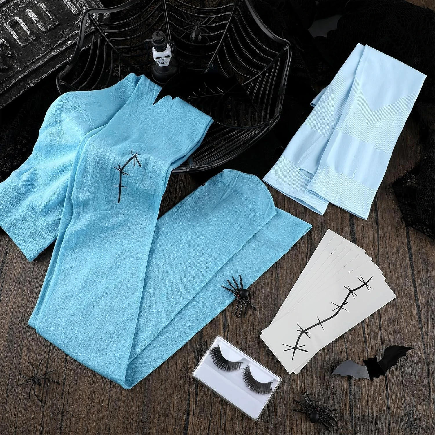 Didaey Night Before Christmas Costume Accessories Include 20 Sheets Halloween Scars Stitches Tattoos Solid Colored Opaque Footed Tights Arm Compression Sleeves Halloween False Lashes For Women