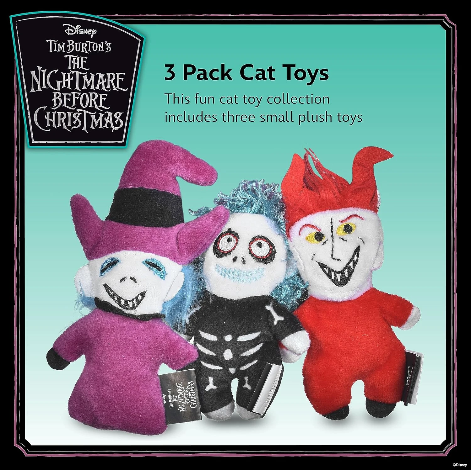Disney For Pets Tim Burton’s Nightmare Before Christmas: Trick-or-Treaters Shock, Barrel, Lock Plush Catnip W/Crinkle Cat Toy- 3PK | Halloween Cat Toys