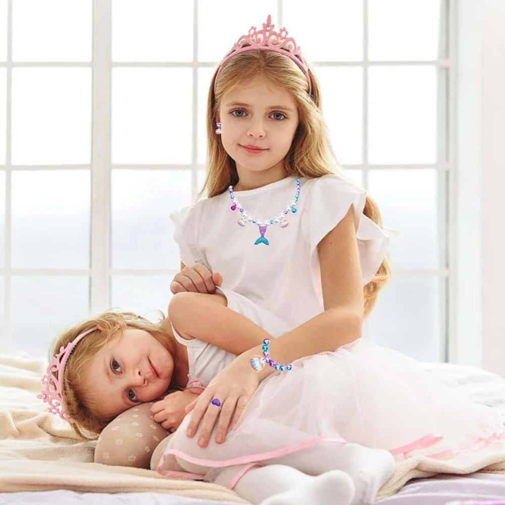 - 【Perfect Gift】The beautiful mermaid set is perfect for birthday parties, princess themed parties, princess costume games, Christmas, Halloween, photography, and more. This is an excellent gift for your dear daughter, granddaughter, and niece. No little girl can refuse the sparkling mermaid jewelry set.