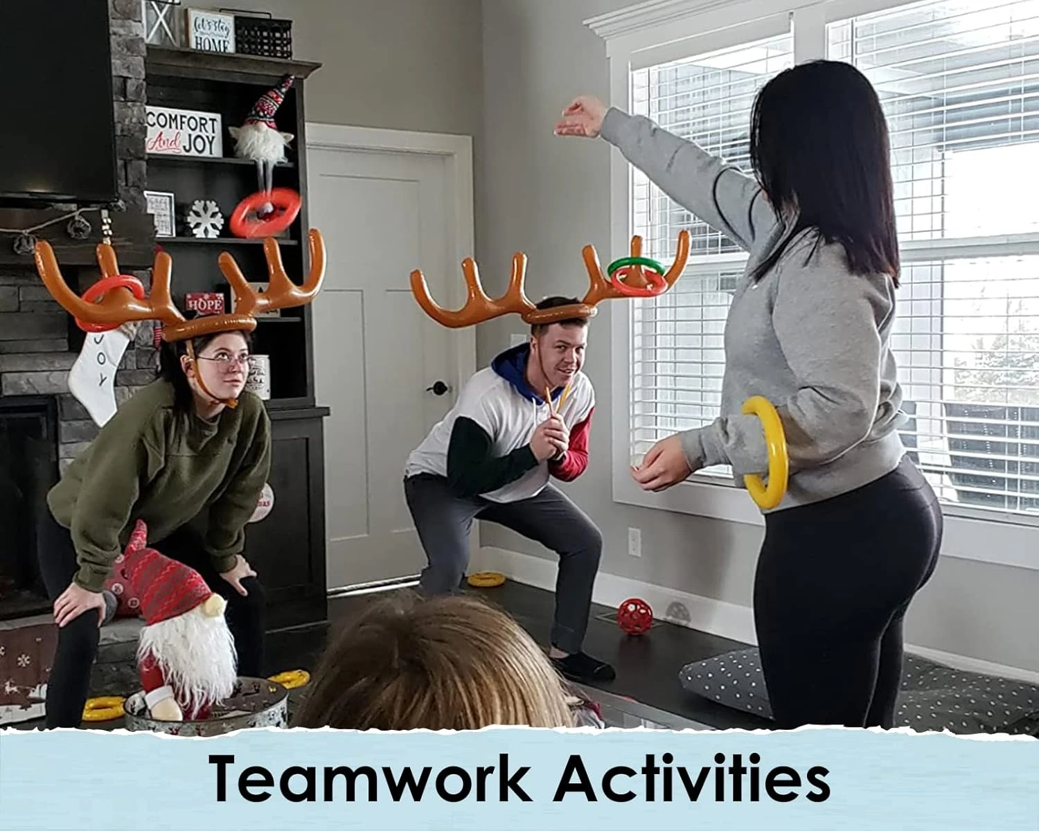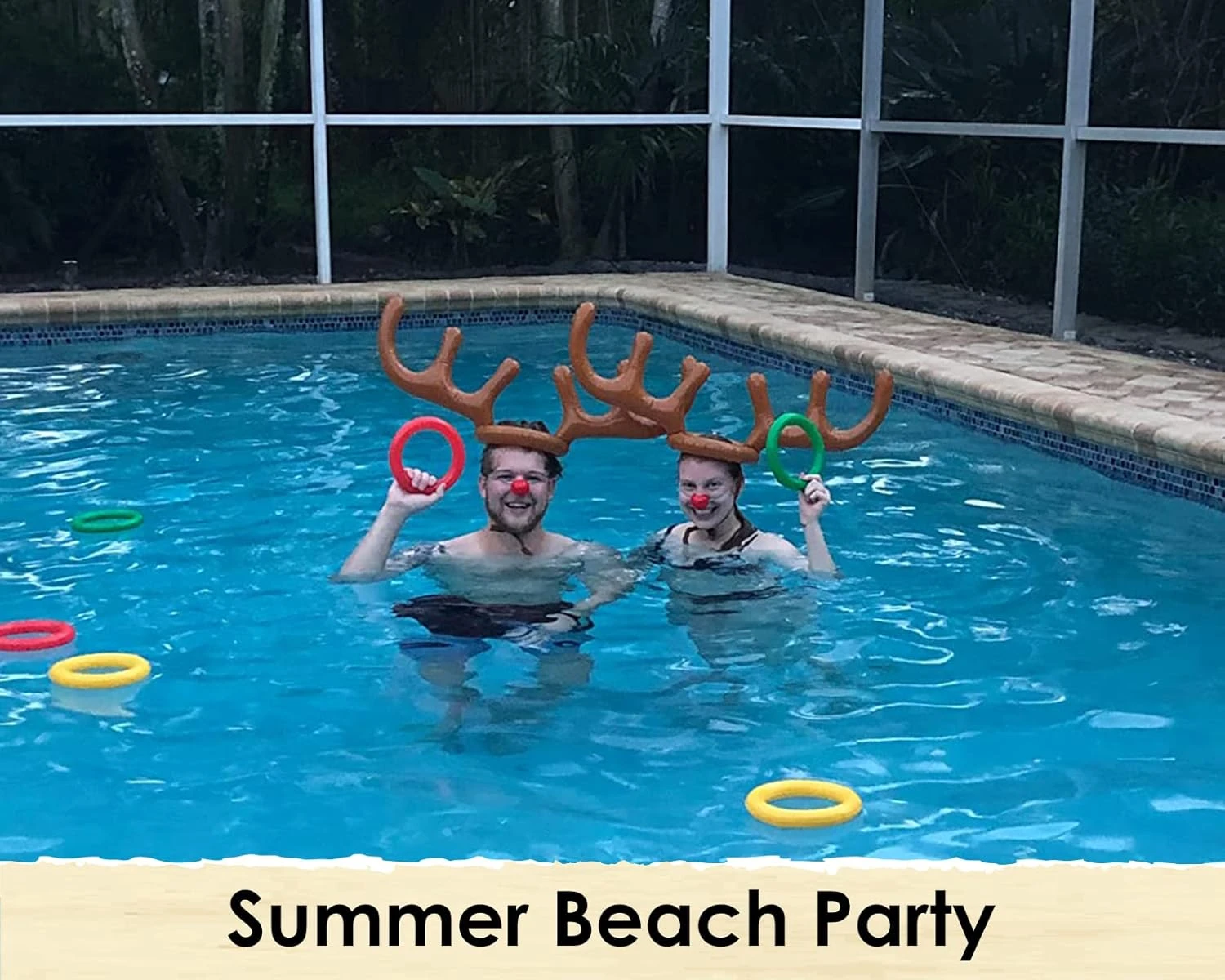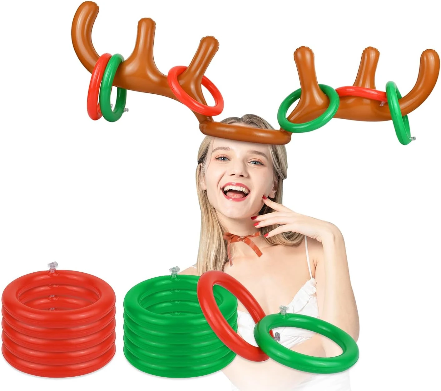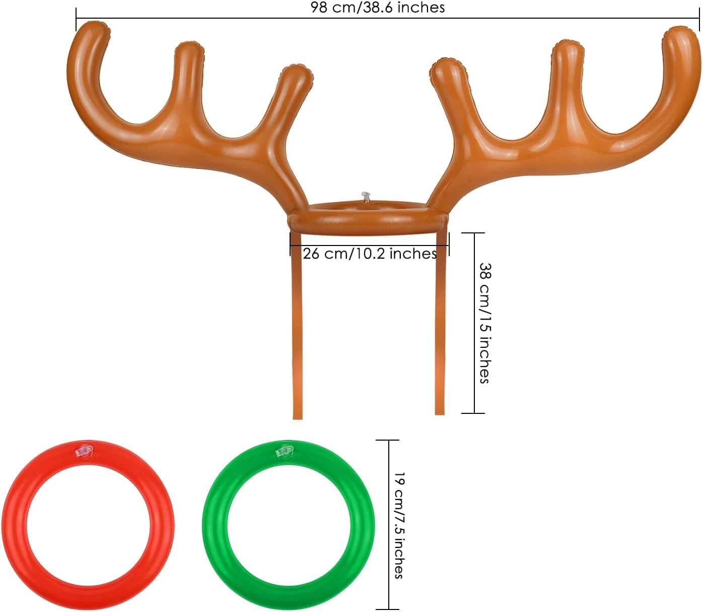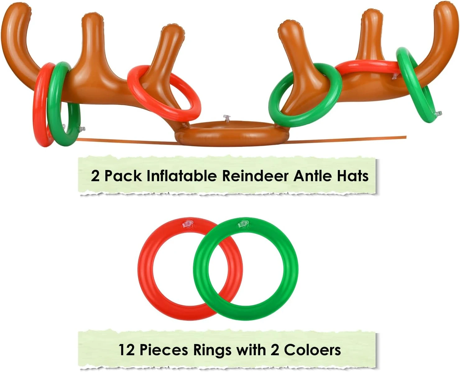 DS. DISTINCTIVE STYLE Inflatable Reindeer Antler Christmas Party Game Hat Antler Ring Toss Game For Xmas Holiday Party Supplies Favors (2 Antlers 12 Rings)