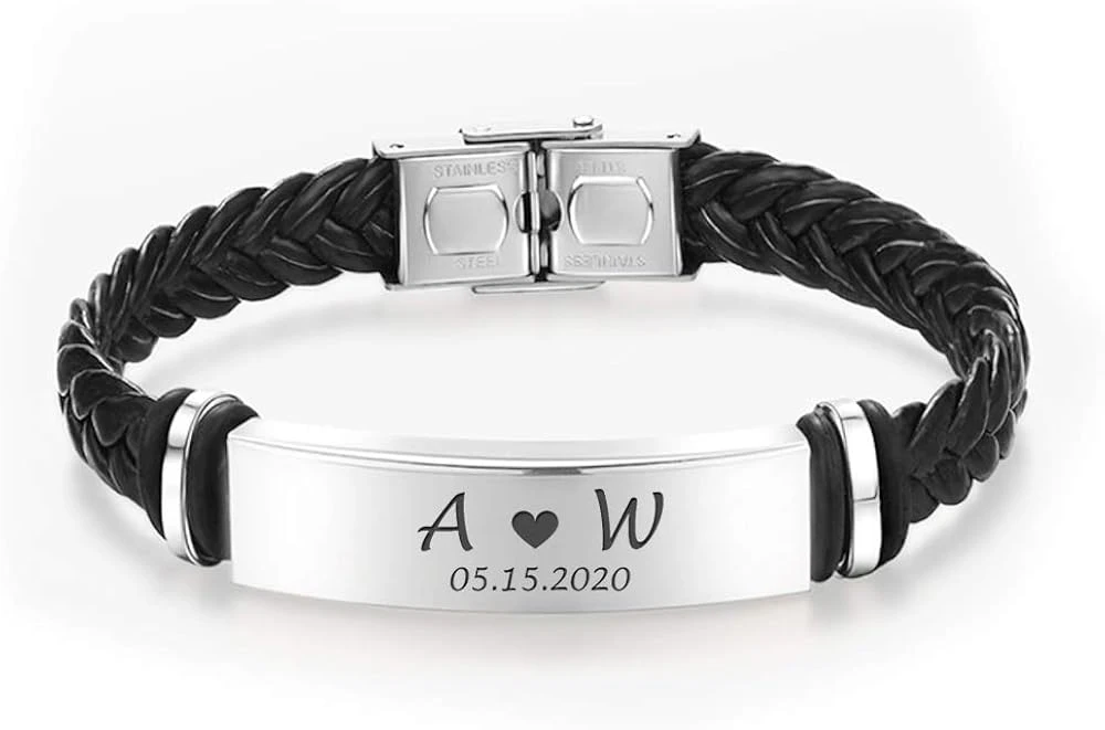 EDSG Personalized Mens Bracelet | Leather Engraved Bracelet Gift For Boyfriend Husband Dad Bestman | Gift For Christmas, Birthday, Wedding, Anniversary, Father’s Day | Customised Name