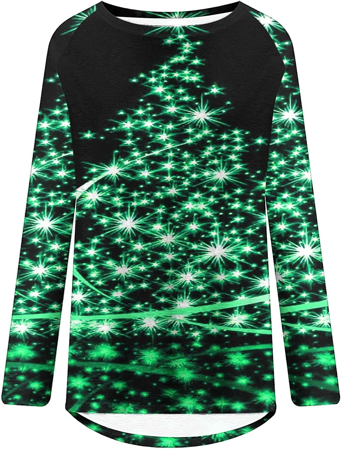 EGNMCR Long Sleeve Tunic Tops For Women Christmas Trendy 3D Shiny Xmas Tree Print Shirt Loose Blouse Dressy Casual Outfits