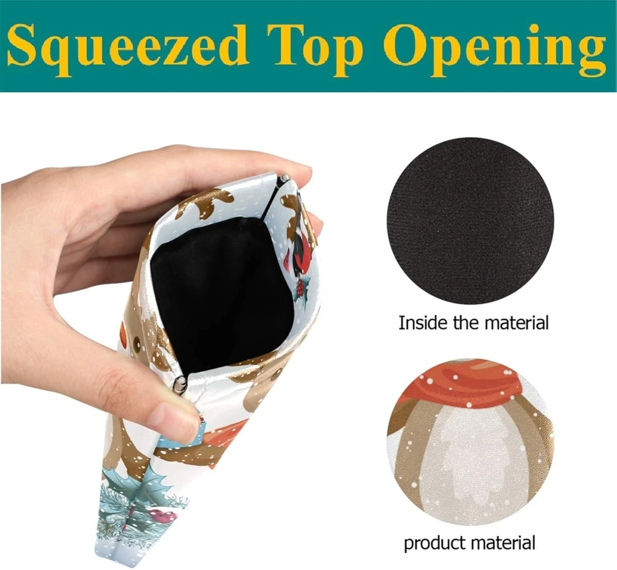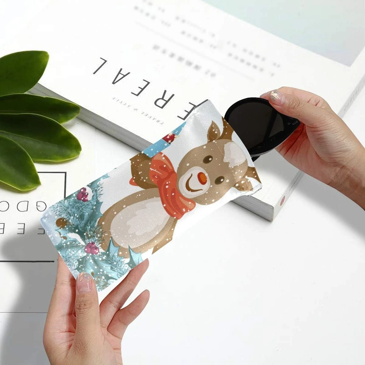 Eyeglasses Case Glasses Pouch – Christmas Reindeer Santa Squeeze Top Sunglasses Pouch Portable Microfiber Pouch For Women
