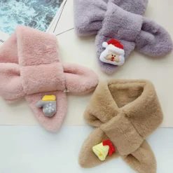 OUSFANAM Winter Scarf, Kids Christmas Plush For Cross Collar Scarf Cartoon Holiday Neck Warmer Shawl Wr