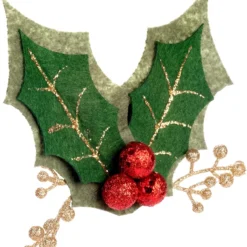 DEMDACO Holly Berry Red, Green, And Gold Tone Glittered 5 Inch Polyester Christmas Lapel Pin