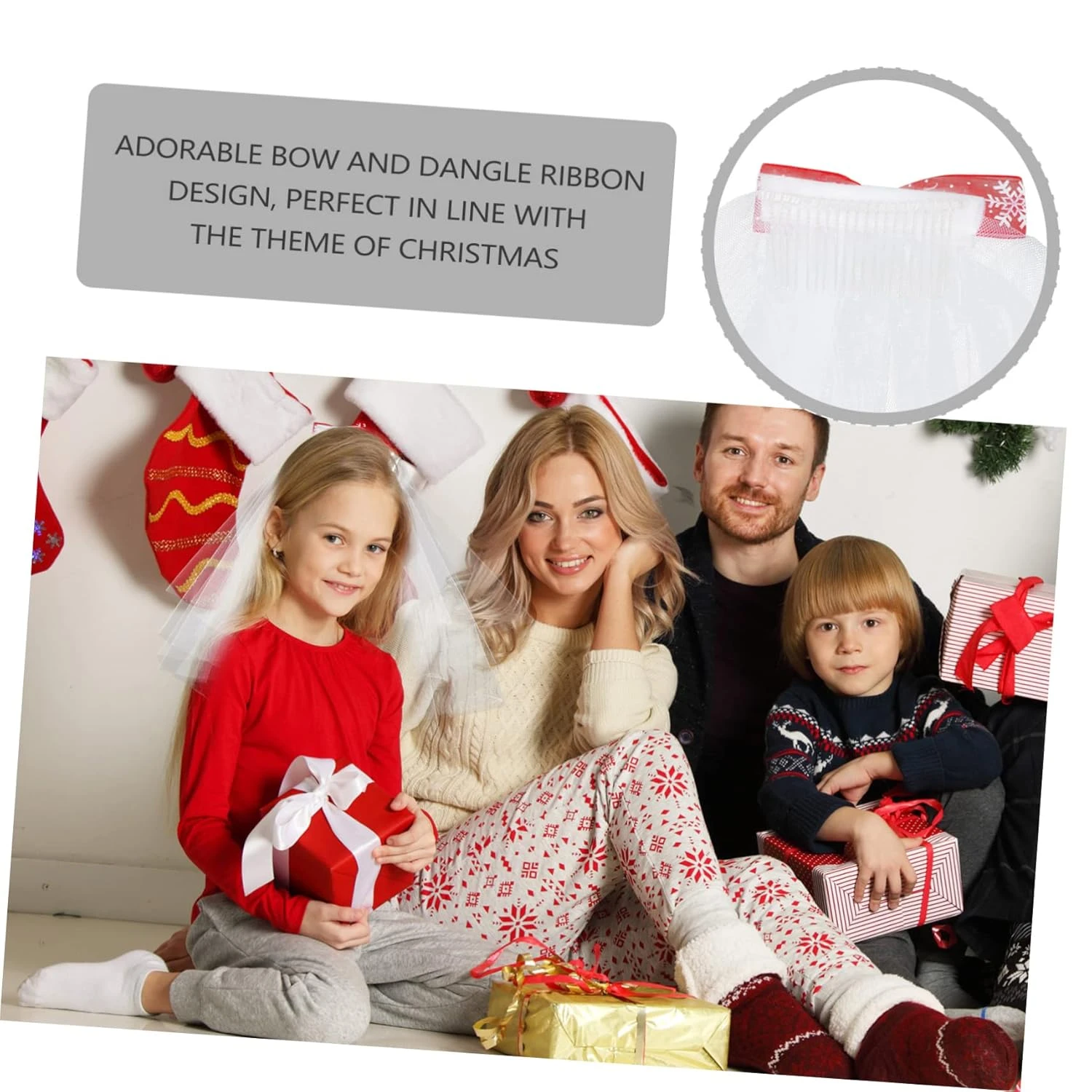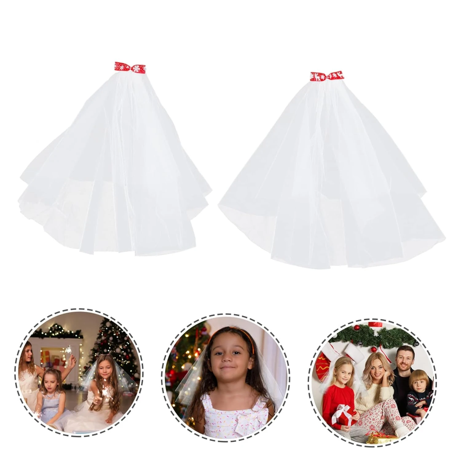 FRCOLOR 2pcs Veil Bow Flower Girls Headcovering Bachelorette Party Veil Christmas Hairpins White Veil Flower Girl Hair Accessory Flower Girl Gifts Girls Veil Hair Comb Christmas Mesh Bride