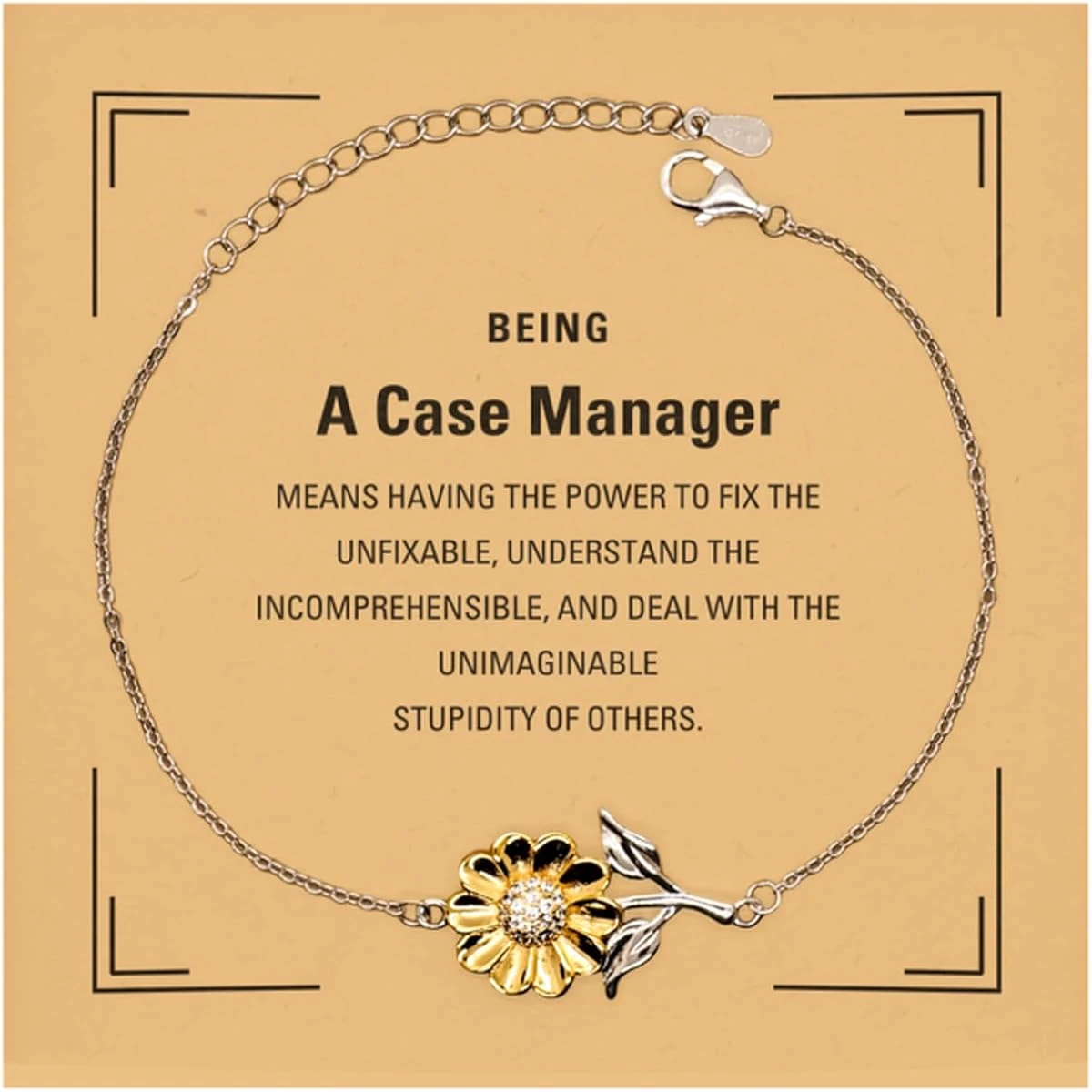 Funny Case Manager Christmas Present For Case Manager Sunflower Bracelet Gifts, Being Case Manager Means Having The Power To Fix The Unfixable And Deal With The Unimaginable Stupidity Of Others, Case