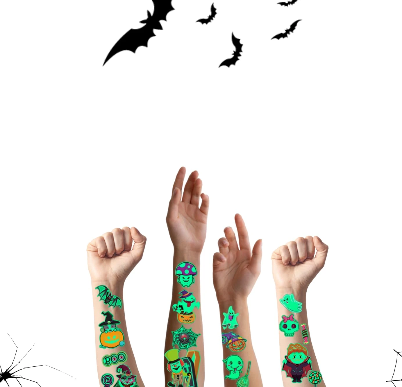 GENERIC 120Pcs Halloween Glow In The Dark Temporary Tattoos, Horror Tattoo Stickers, For Boys Girls Adults Teen Kids, Gift For Halloween, Thankgiving Holiday, Christmas Eve, New Year’s Eve