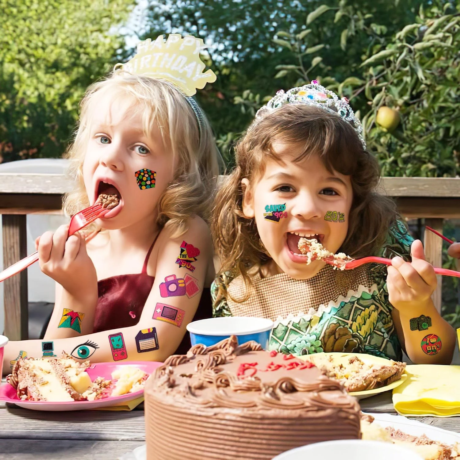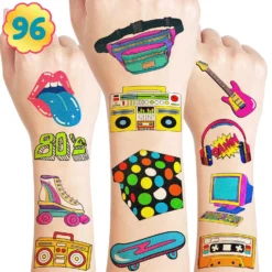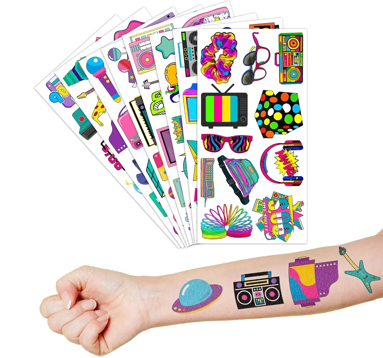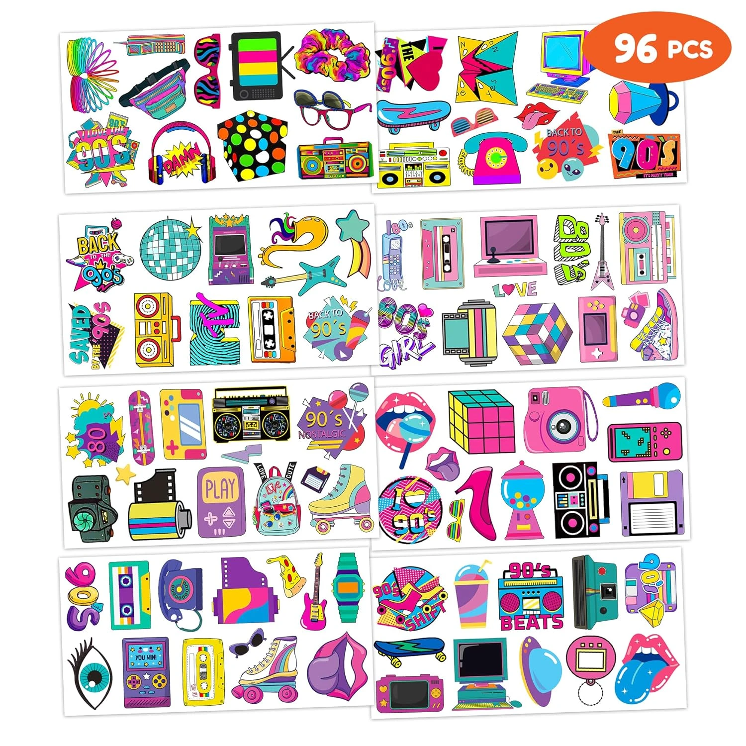GENERIC 96 PCS Throwback 80s 90s Retro Theme Temporary Tattoos Birthday Party Favors Decorations Supplies Decor Cute Vintage Tattoo Stickers Gifts For Games Kids Girls Boys School Rewards Carnival Christmas