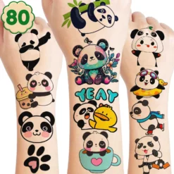 GENERIC Adorable Panda Temporary Tattoos: 8 Sheets, 80PCS, Perfect For Birthday Parties, Decorations, And Gifts For Kids – Cute Stickers For Girls And Boys, Classroom Prizes, Themed Christmas Fun