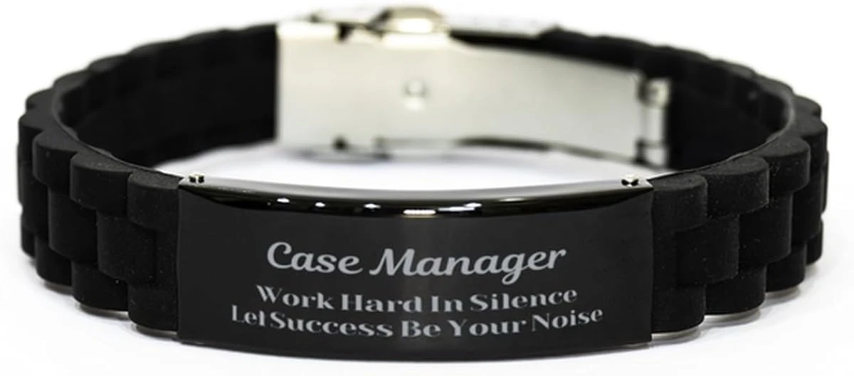 GENERIC Appreciation Gifts For Case Manager Christmas Birthday Gifts For Case Manager Black Glidelock Clasp Bracelet Engraved, Case Manager Work Hard In Silence Let Success Be Your Noise, Case Manager Thank