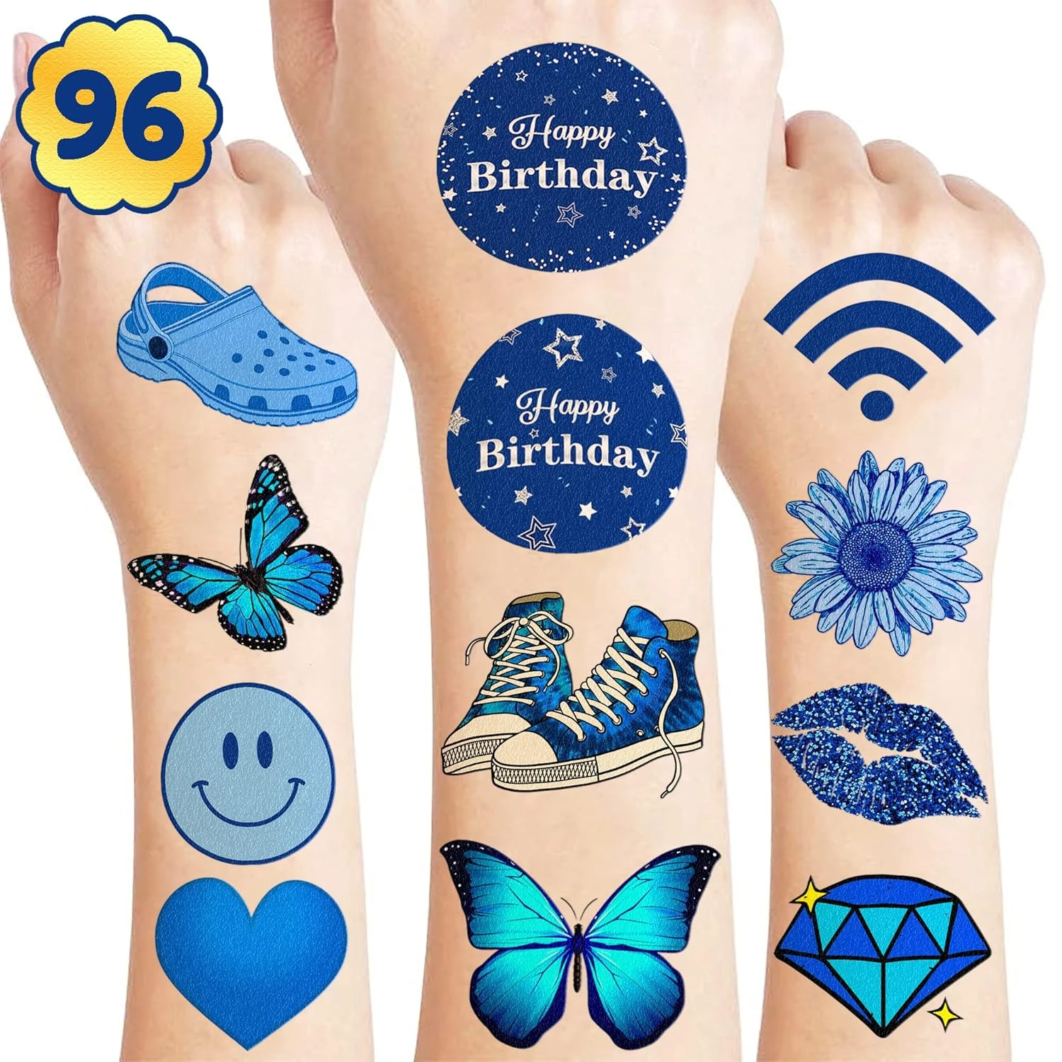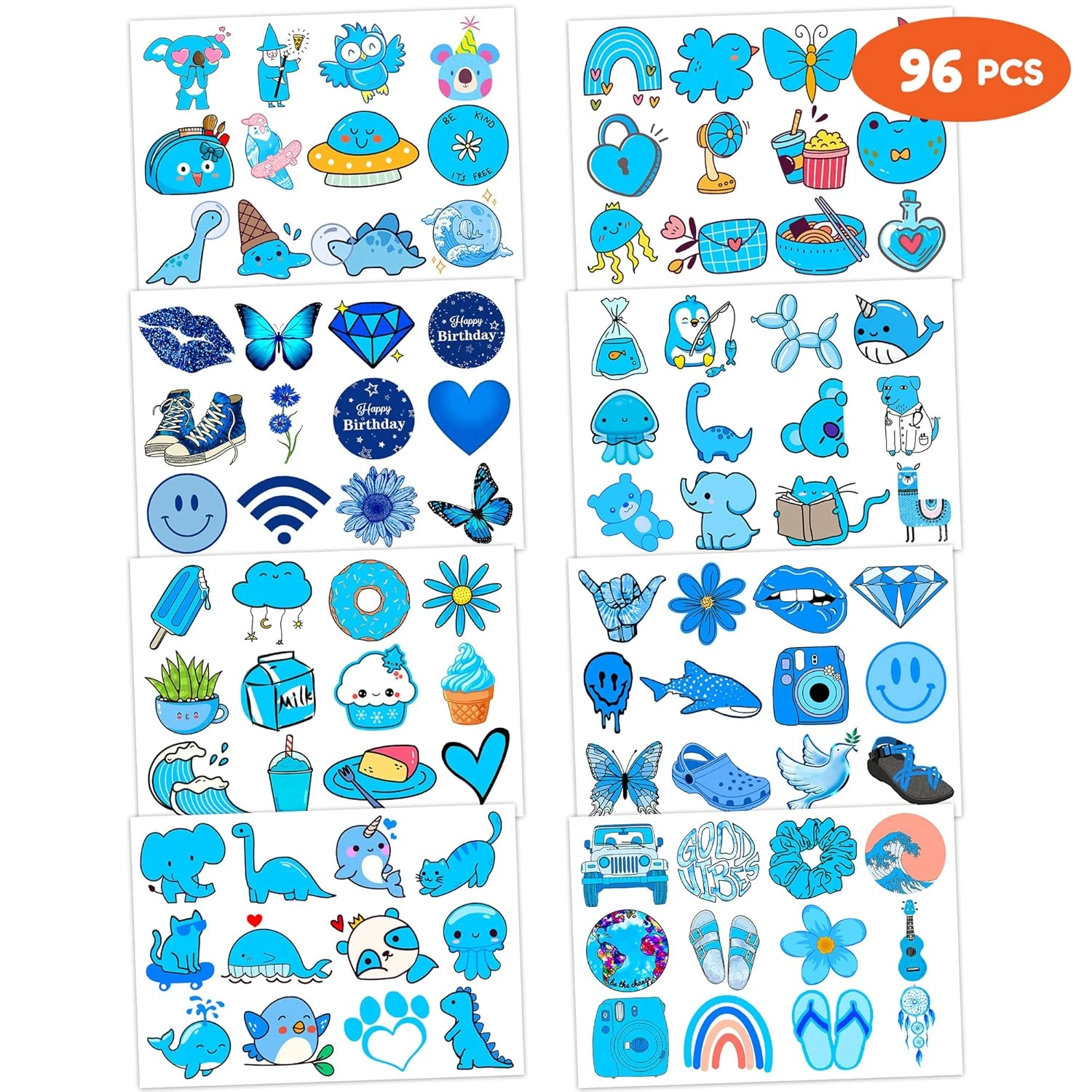 GENERIC Blue Temporary Tattoos Theme Birthday Party Decorations Supplies Favors Decor Cute Stickers Tattoo 8 Sheets 96 PCS Gifts For Kids Boys Girls Classroom Rewards Prizes Christmas