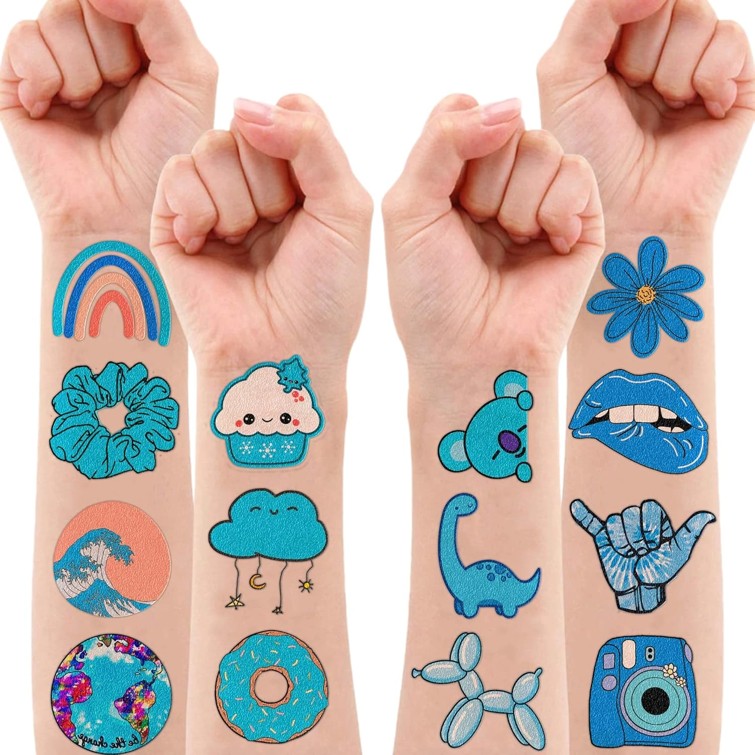 - Cute And Funny Blue Themed Tattoos: Cute Blue Temporary tattoos Stickers, features an assortment of themed characters, colors are bright, and designs are adorable, use them as party favors and your kids will love. Perfect for themed party, birthday activities, school reward and other party events. They will be your kids’ favorite small gifts.