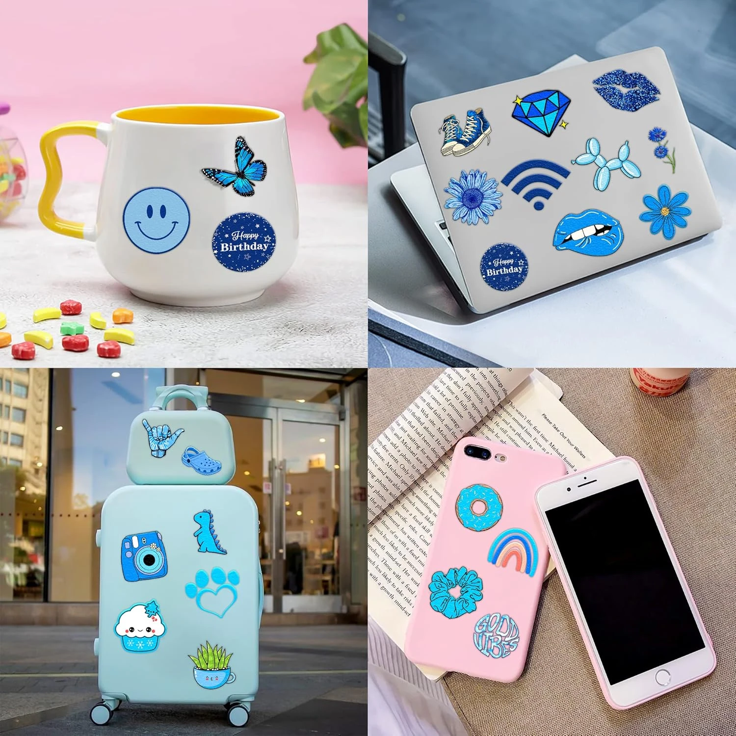 - Blue Party Decoration: The set contains instructions for use and is easy to use. Blue tattoo stickers can be applied on arms, face, hands, neck, shoulders, legs, wrists and ankles to make you look cool at all kinds of parties. Popular hit with your kids. You can apply them to your body or some smooth objects, for example, glass, stationery, paper, crafts cups, cabinet, bottle.