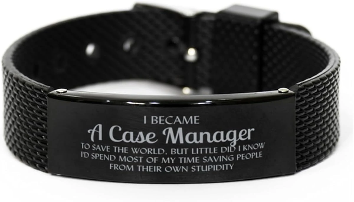 GENERIC Case Manager Black Shark Mesh Bracelet Gifts For Case Manager Sarcastic Gifts For Case Manager, Birthday Christmas Gifts For Coworkers I Became Case Manager To Save The World, But Little Did I Know
